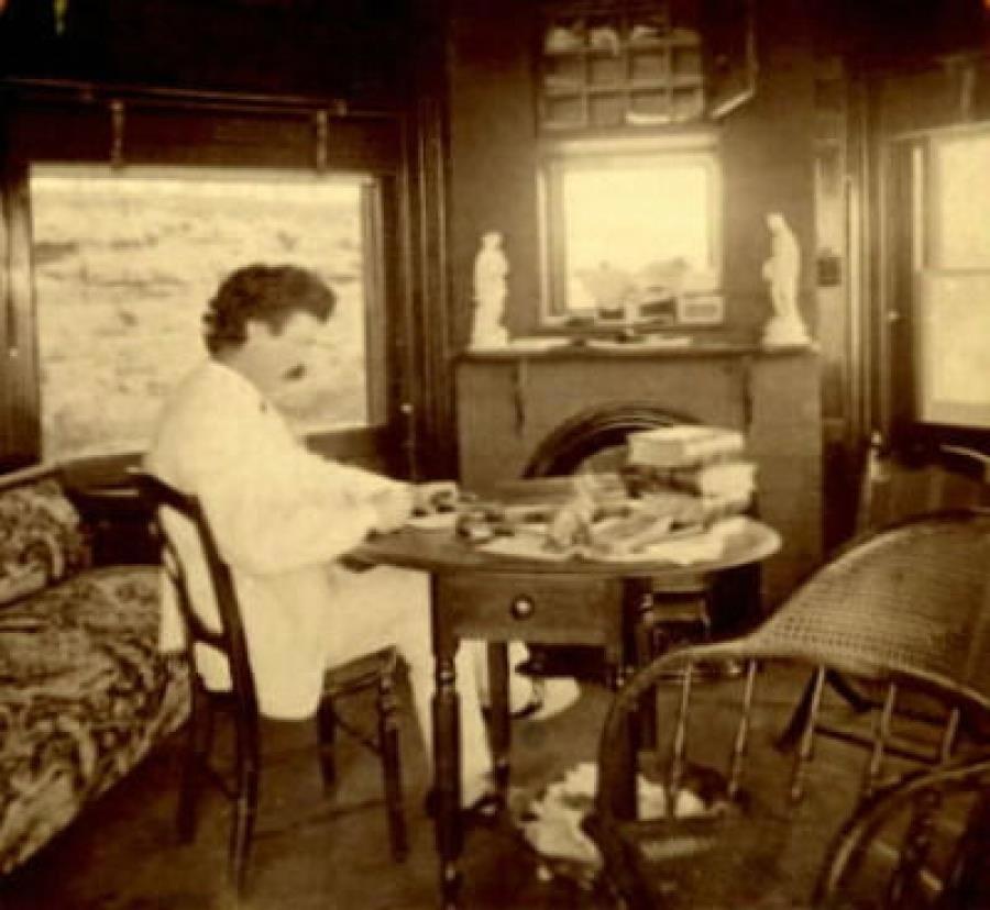 9) Сэмюэл Лэнгхорн Клеменс, больше известный под своим псевдонимом "Марк Твен", был американским автором, чьи истории про Тома Сойера и Гекльберри Финна стали известными по всему миру. По-американски роскошный кабинет с деревянной мебелью и традиционными семейными реликвиями и портретами в рамках на каминной полке, однако на фотографии отсутствует знаменитая курительная трубка писателя. Марк Твен был заядлым курильщиком, и посетители дома Твена иногда говорили, что в кабинете писателя стоял такой густой табачный дым, что самого хозяина почти нельзя было разглядеть.