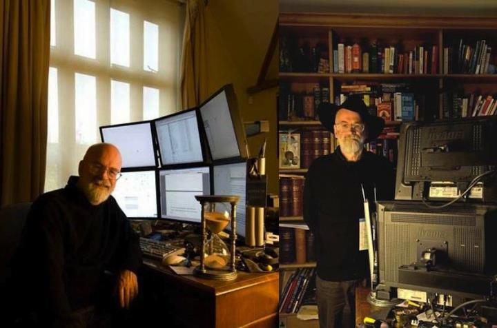 21) Рабочее место Терри Пратчетта поражает и бывалых компьютерщиков: шесть мониторов, расположившихся в два ряда. Пара мониторов – это один огромный «рабочий стол», ещё один экран – для обзора директорий с файлами и пара экранов – для редактирования текстов.