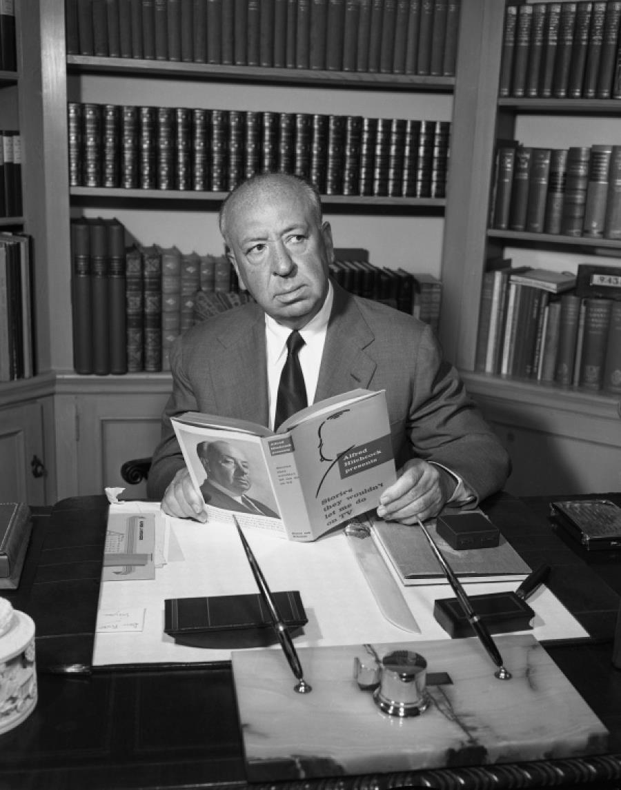 13) Альфред Хичкок в своем кабенете. Порядок на столе у Хичкока просто идеальный.