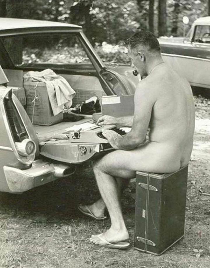 Отдыхая в нудистском лагере в Калифорнии, Сэлинджер писал, пристроив пишущую машинку в багажнике автомобиля.
