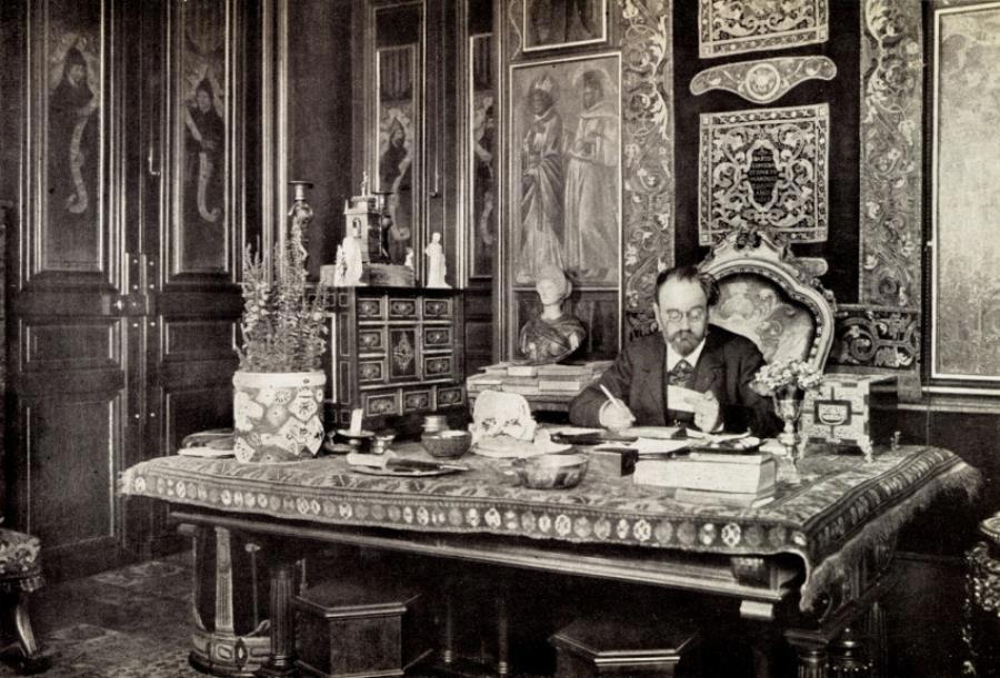 16) Эмиль Золя в своем кабинете,великий французский писатель находится непосредственно за работой за письменным столом.