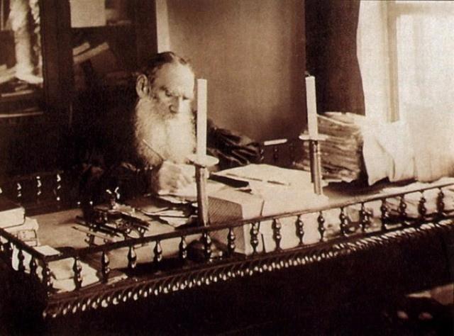 2) Письменный стол Льва Николаевича Толстого в его московской усадьбе в Хамовниках – массивный, просторный, всегда заваленный бумагами. Чтобы они не соскальзывали, столешница по периметру ограждена небольшим «заборчиком». Это невысокая деревянная решётка из мелких точёных балясин, соединённых между собой поверху перильцами, идущая по краю стола. Лев Толстой всегда сам наводил порядок в своём кабинете, сюда не допускалась даже горничная.