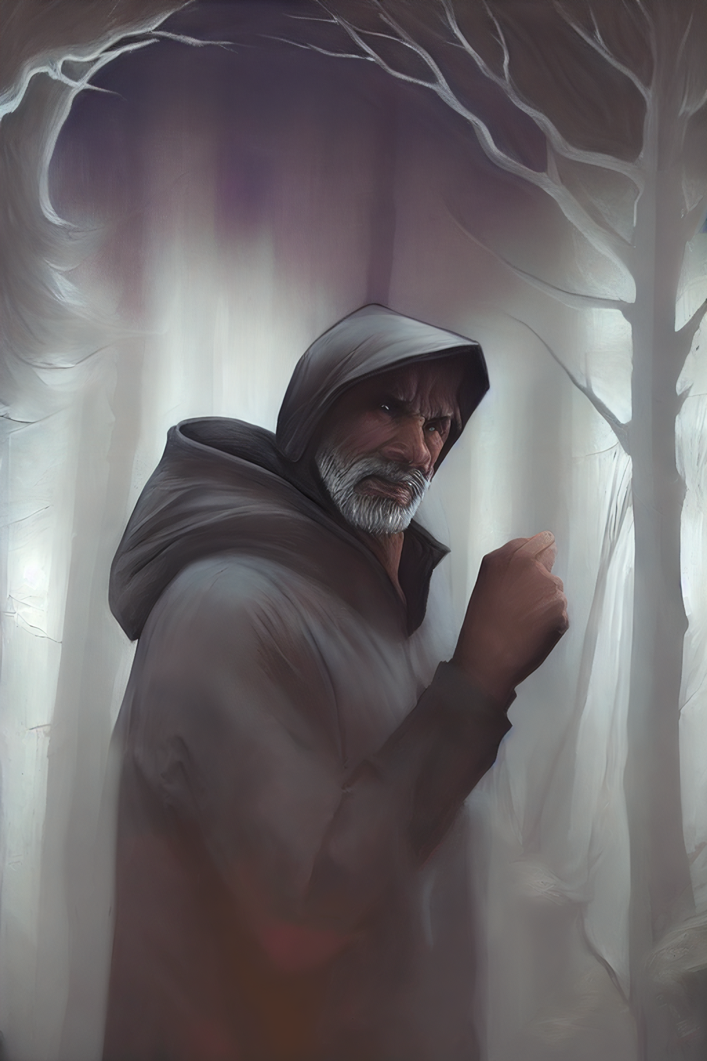 второй такой прям реалистичный, но слишком ясно смотрит, больше напоминает такого персонажа, который приходит в начале истории и предупреждает, что деревня/дом/лагерь проклят и все умрут, бегите безумцы!)