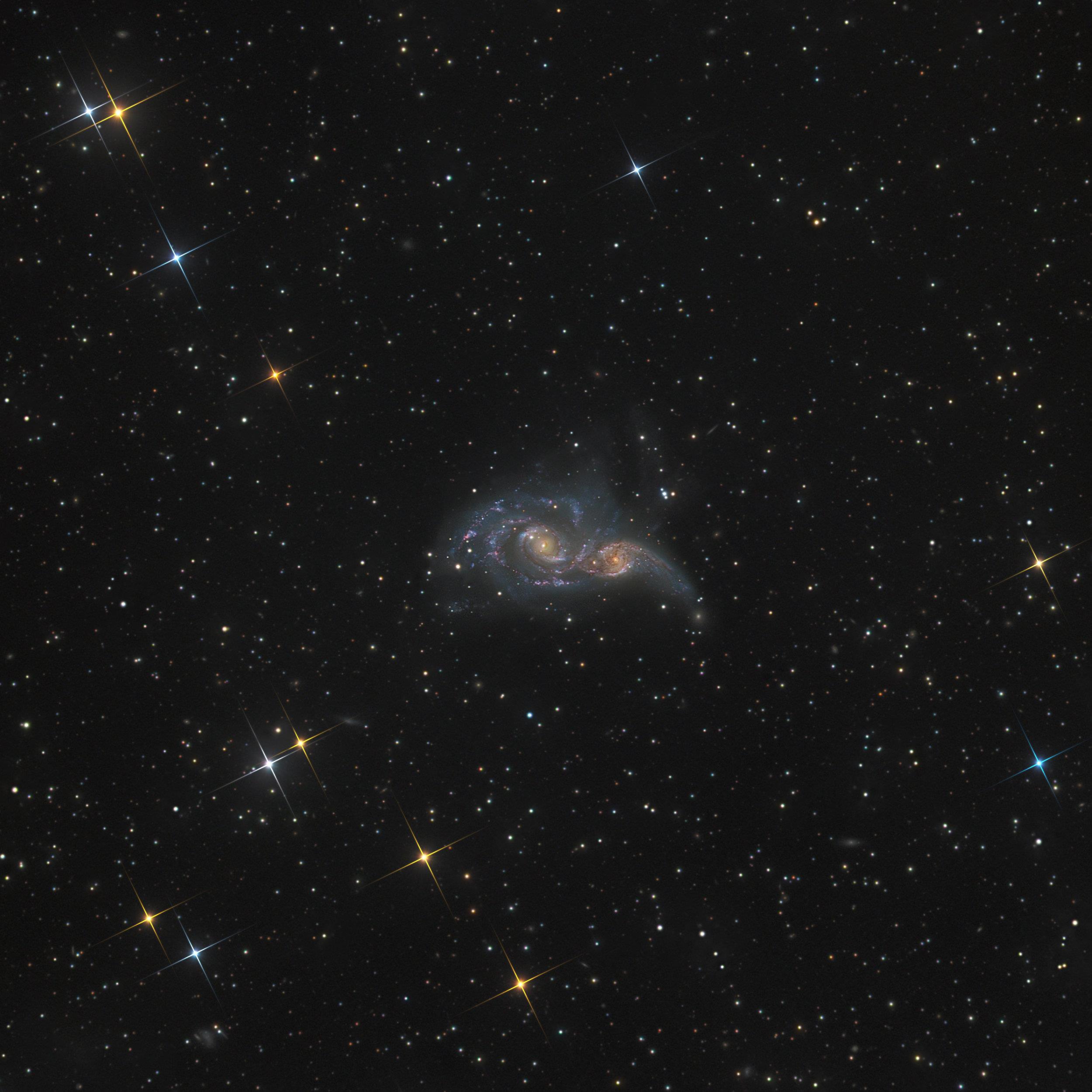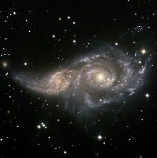 Обе эти спиральные галактики расположены на расстоянии 55 миллионов световых лет от Земли в скоплении Девы