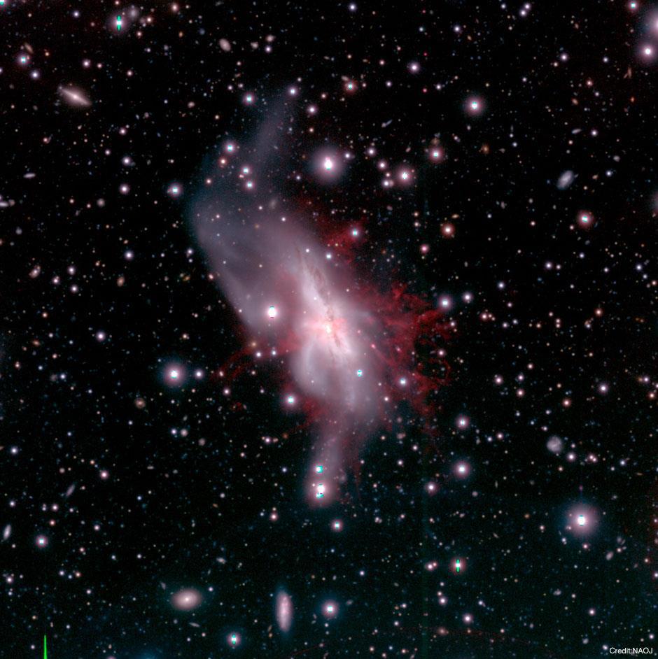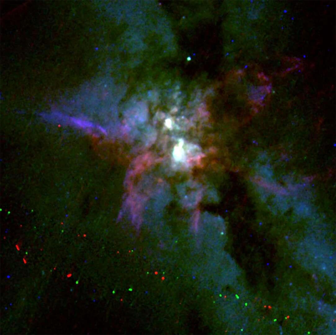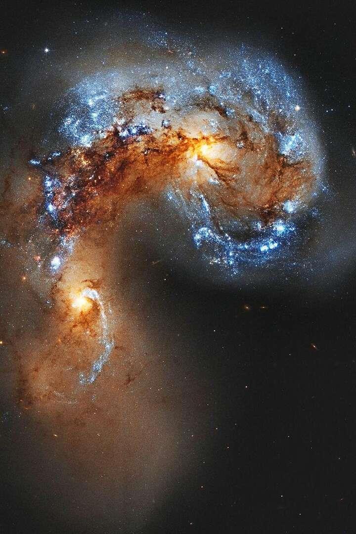 Галактики Антенны в настоящее время переживают фазу звездообразования, в которой облака газа и пыли сталкиваются и вызывают быстрое звездообразование