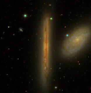 Один объект виден спереди, а другой сбоку, демонстрируя дискообразную природу спиральных галактик.