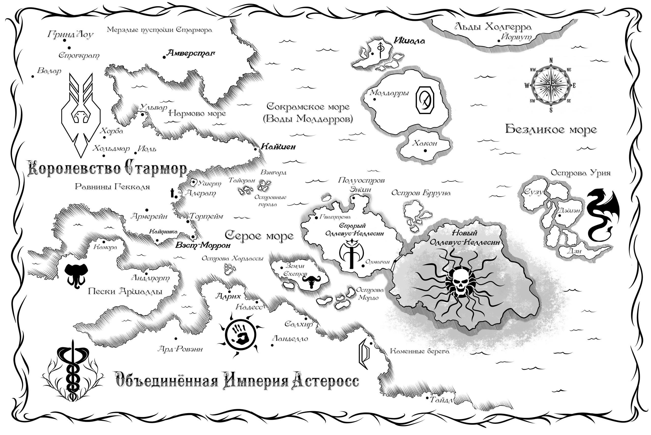 А теперь дальше, к делу. Перед вами карта аспиррского мира. Скажу по секрету, что это лишь 1/4 ее часть.