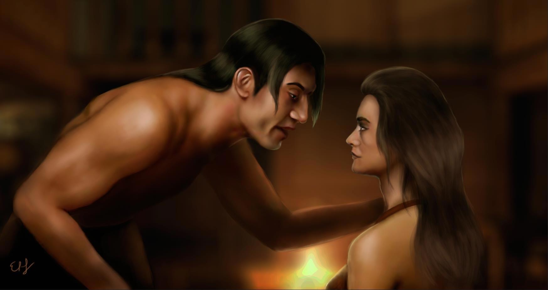 Дальше. Главные герои. Перед вами Ведьма Йерра Мелькихор. Ну и капитан Кальд, конечно же. Тот самый, "Проклятый".