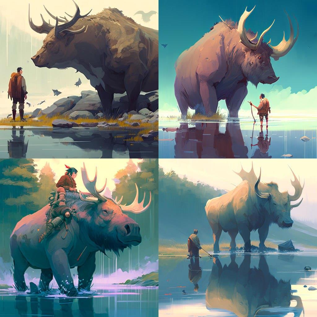 В итоге я стал обладателем эпического полотна "Драк в облике лося вышел на берег реки и превращается в гиппопотама".