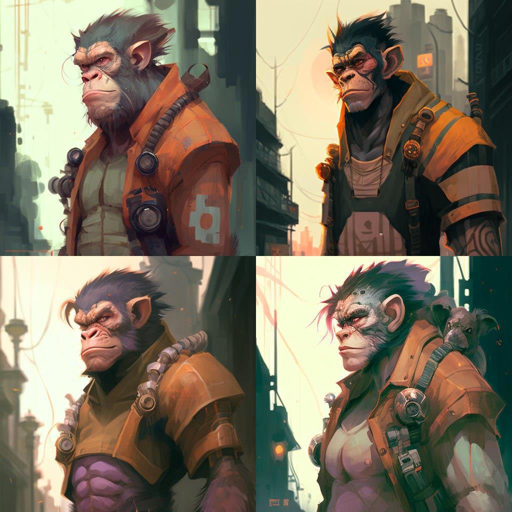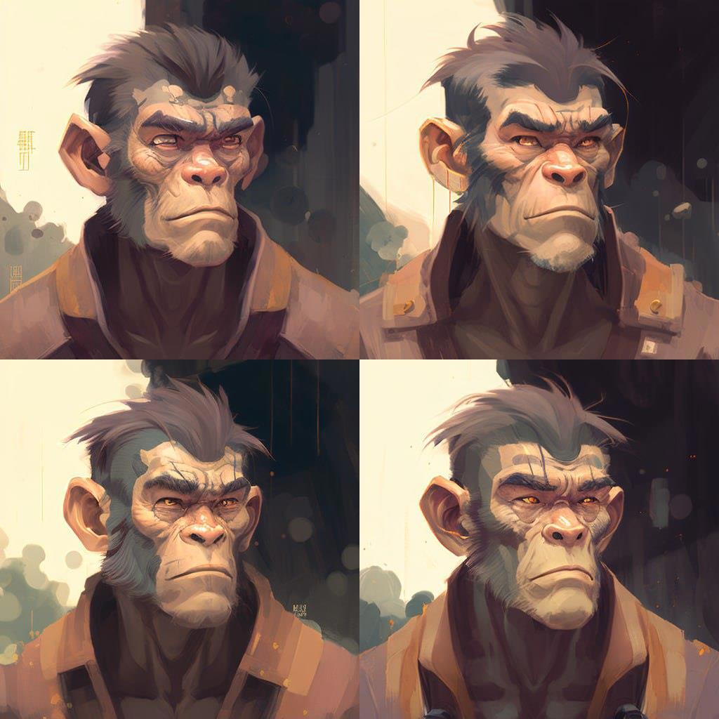 Четвертый получился сразу, а вот когда мы рисовала Психа - второго из паломников, демона обезьяно-человека, я смог оценить главный плюс нейросетки.
