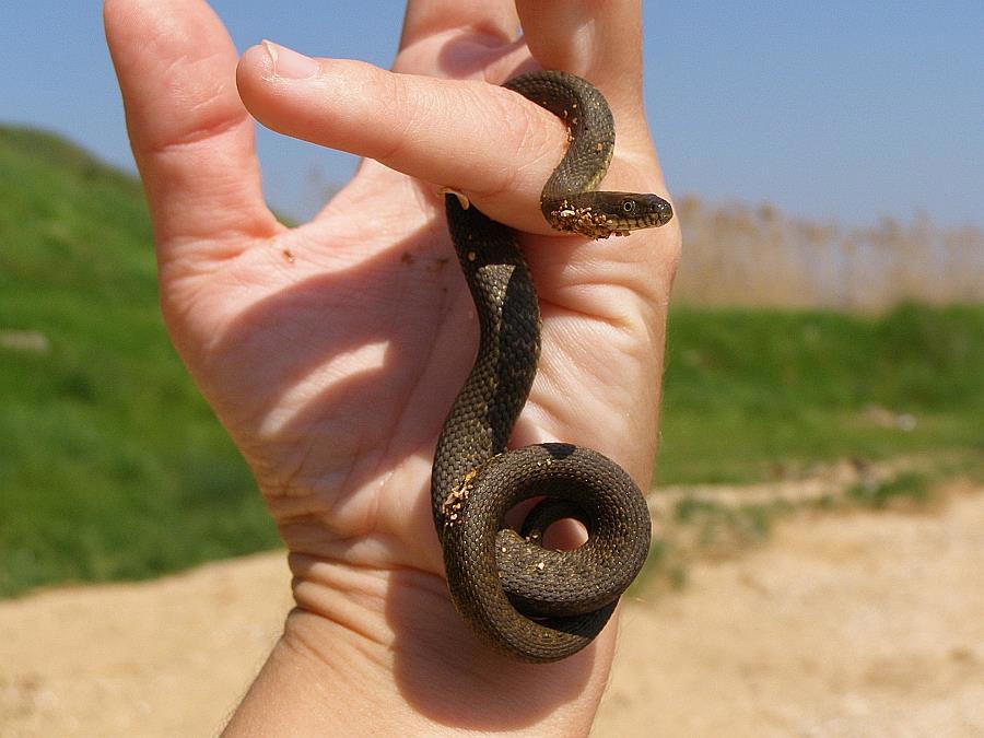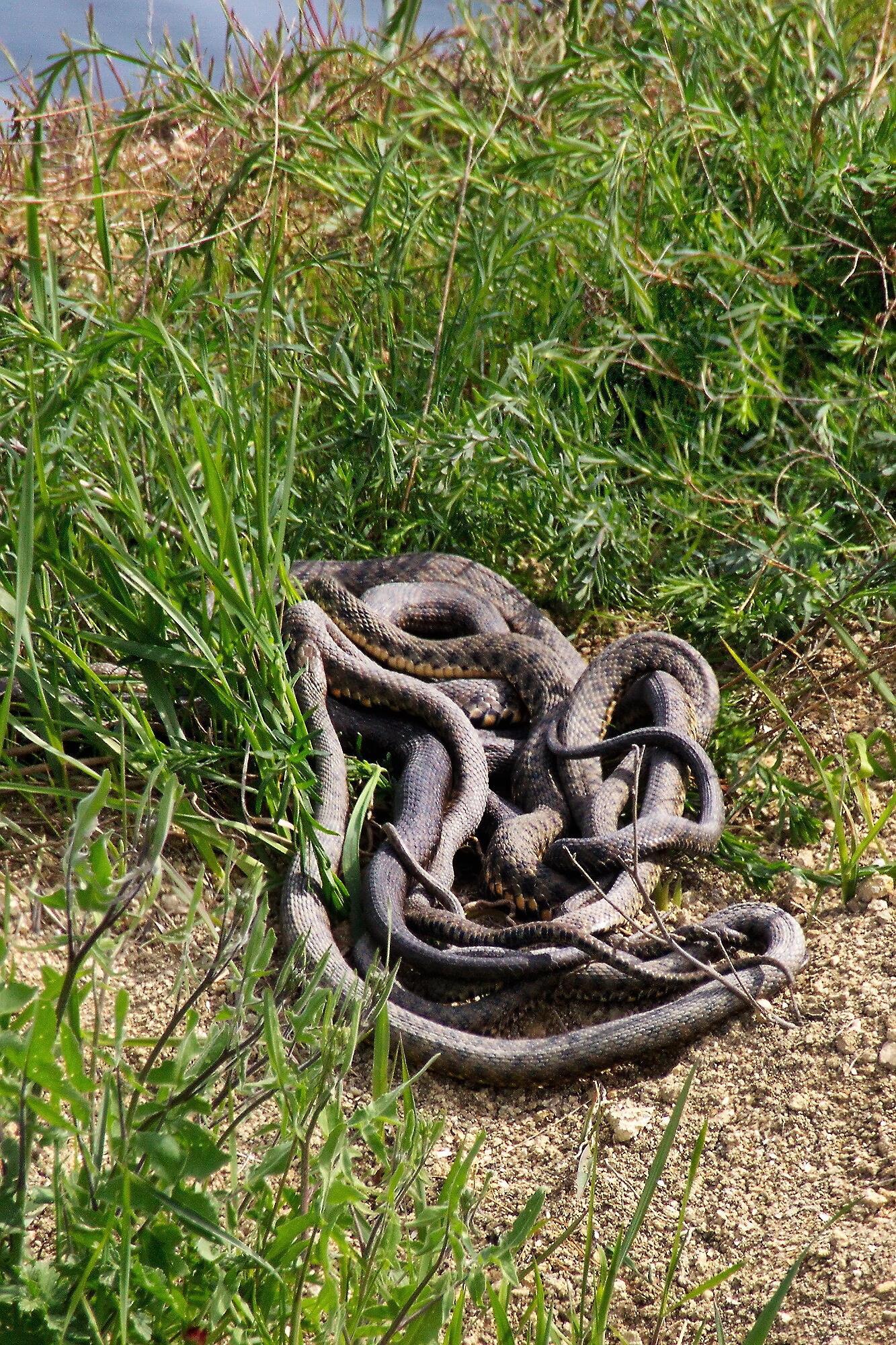 Так что, снимок сделан на полном зуме объектива и он менее резкий, чем предыдущий. Зато я долго стояла и, тактично не шевелясь, посмотрела весь змеиный танец и то, как они расползались, исчезая в провалах, норах и трещинах глинистого овражка.