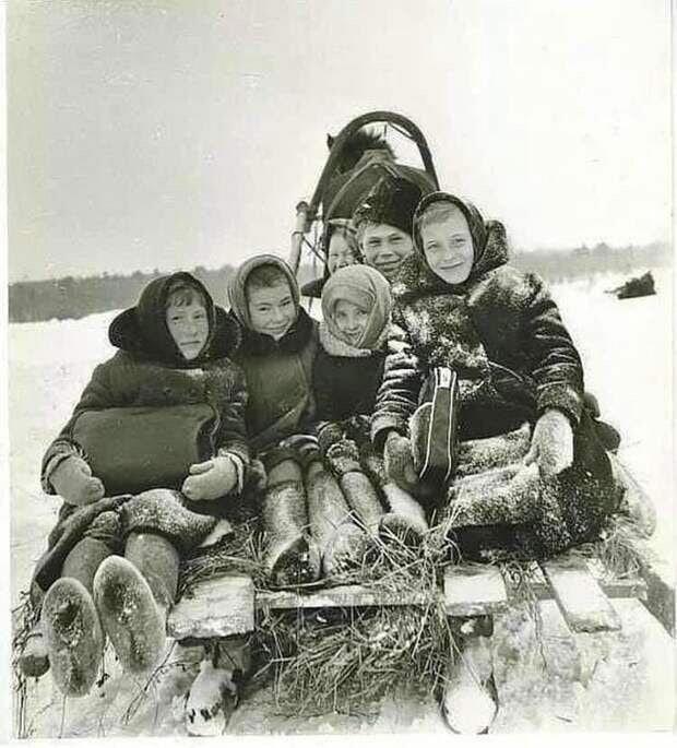 Да, многим детям пятидесятых-шестидесятых, наверное, пришлось ездить в школу на таком "такси", в основном, по понедельникам, а неделю жили в интернате, а когда не было подводы, то шли утром пешком с факелами.