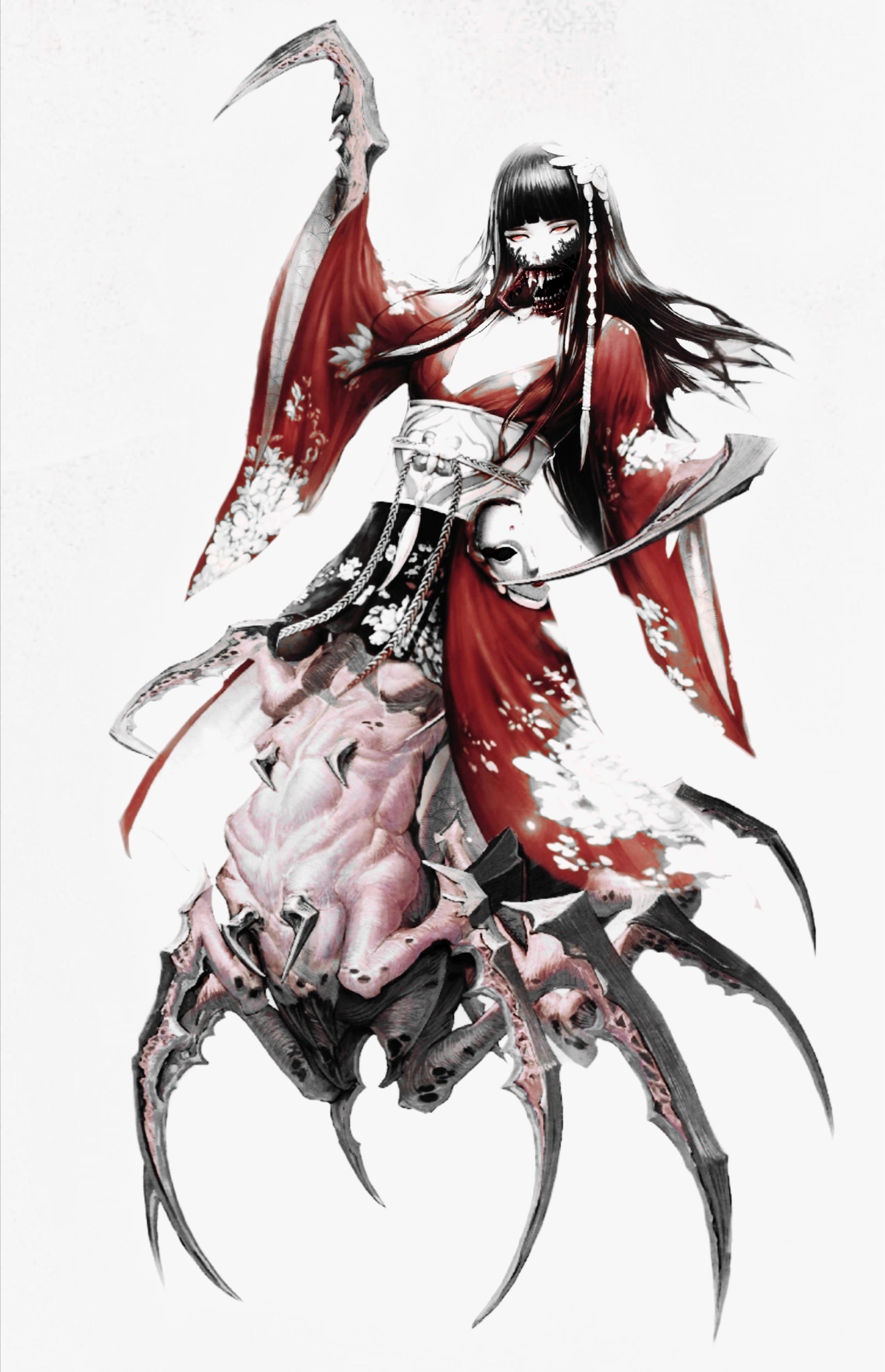 Руки и ноги тоже трансформировались. Из под платья появилось длинное тело, что резво перебирало не одним десятком ног, уклоняясь от атак мужчины. Руки демона вывернулись и удлинились, начав отдаленно походить на передние лапы богомола.
