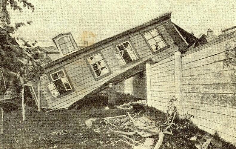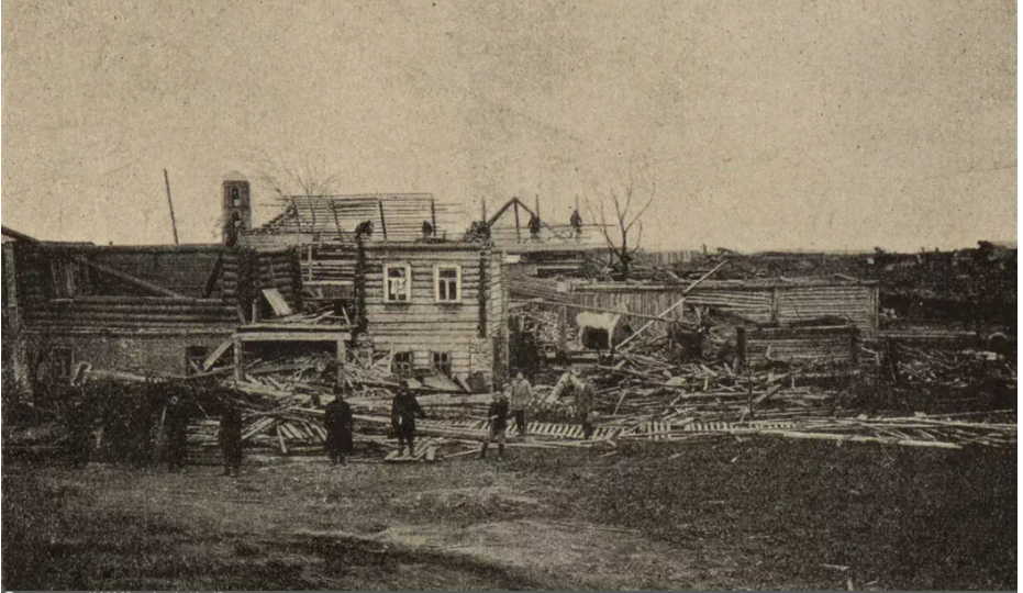 На Госпитальной улице смерч поднял в воздух метров на десять извозчика вместе с его повозкой, потом отбросил в сторону. Извозчик отделался ушибами, а вот лошадь была искалечена.