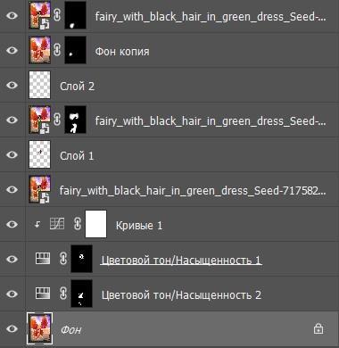 Я взял первоначальную фею, что была у меня на этой обложке в самом первом варианте. Но она белобрысая, а героиня книги черноволосая. Я в фотошопе перекрасил волосы и сделал зеленое платье