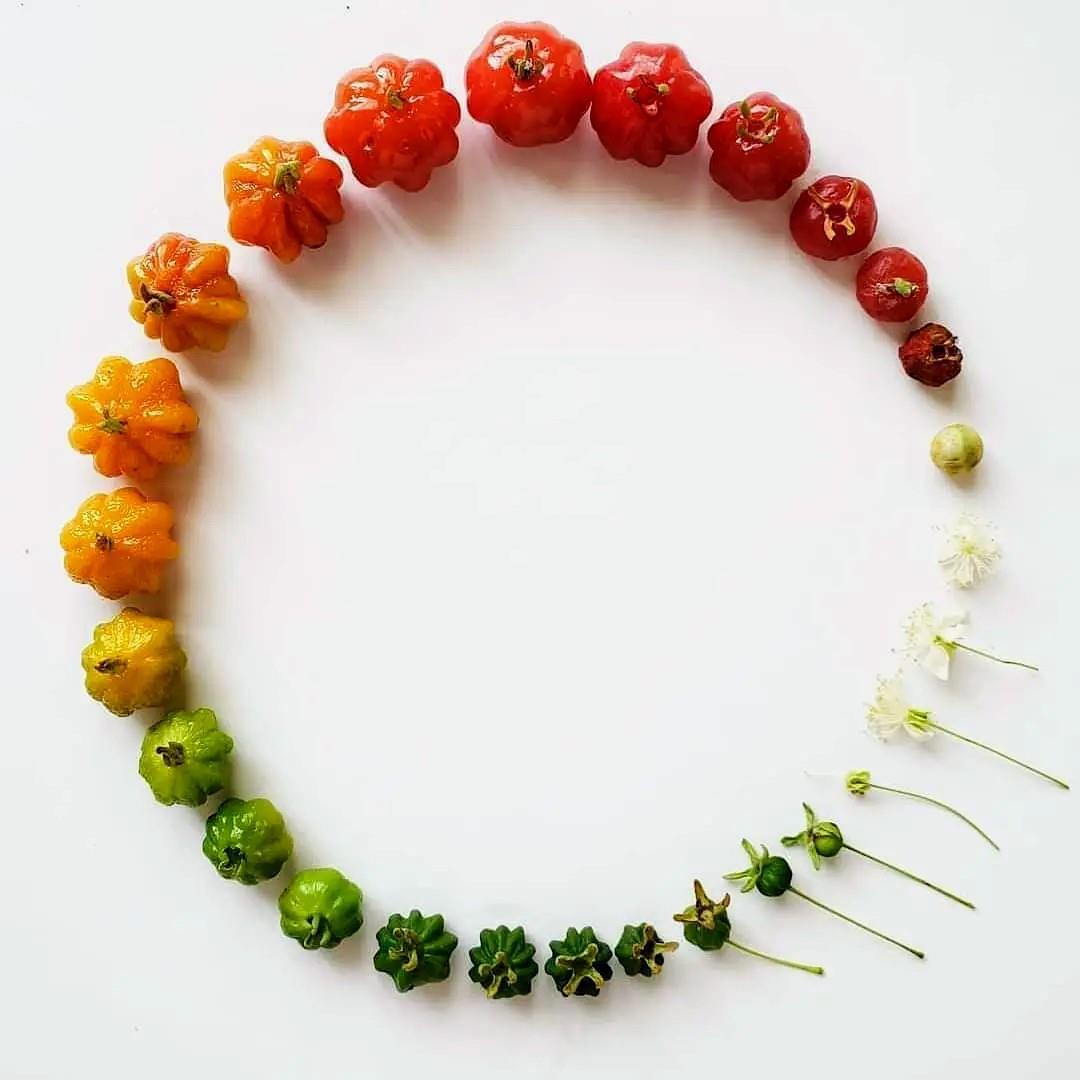 Итак, питанга — это ягода, растущая на деревьях, каждая размером с виноградину, 1-1,5 см каждая.
