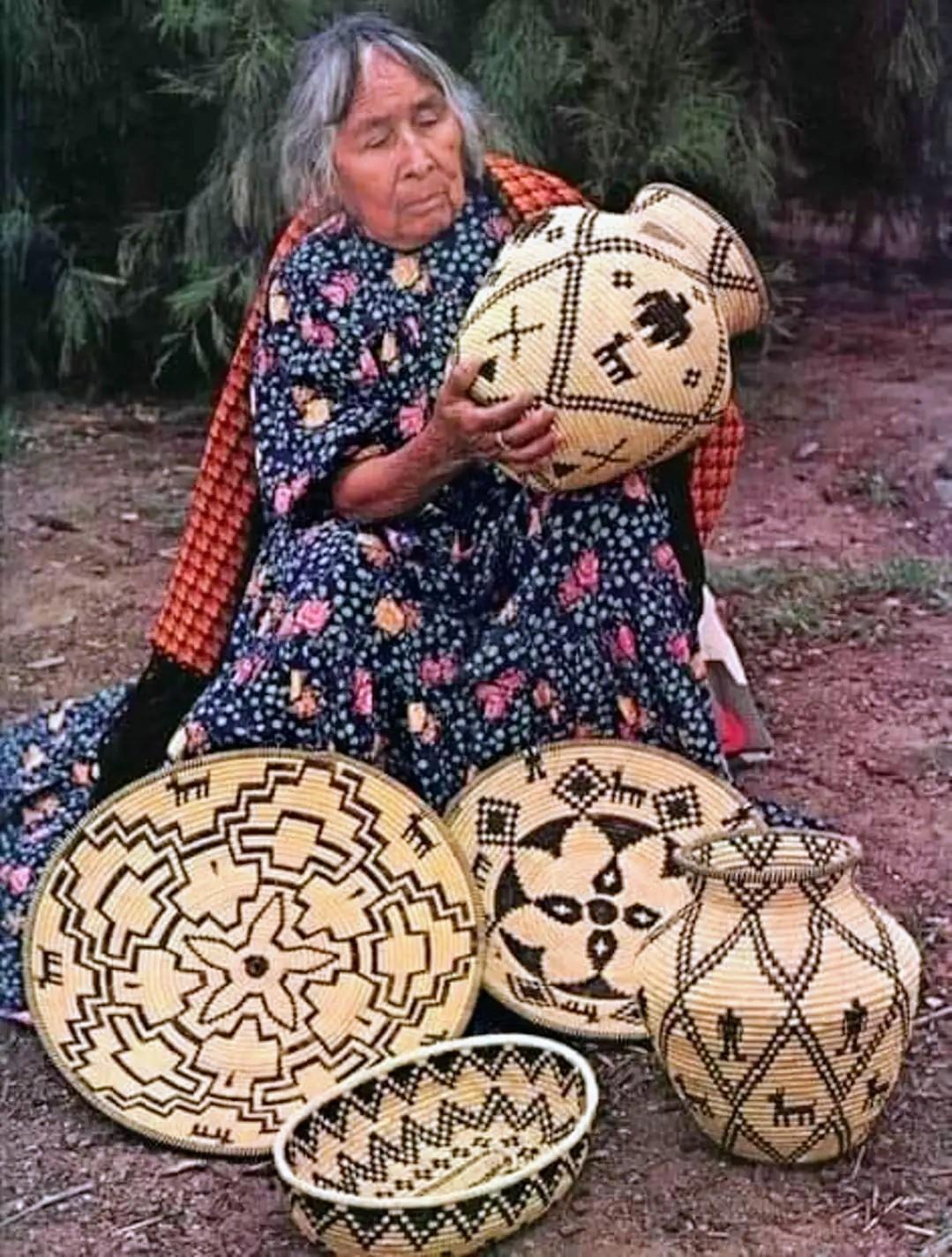 Корзины, блюда, сосуды. Вся утварь сплетена этой пожилой женщиной из племени апачи.