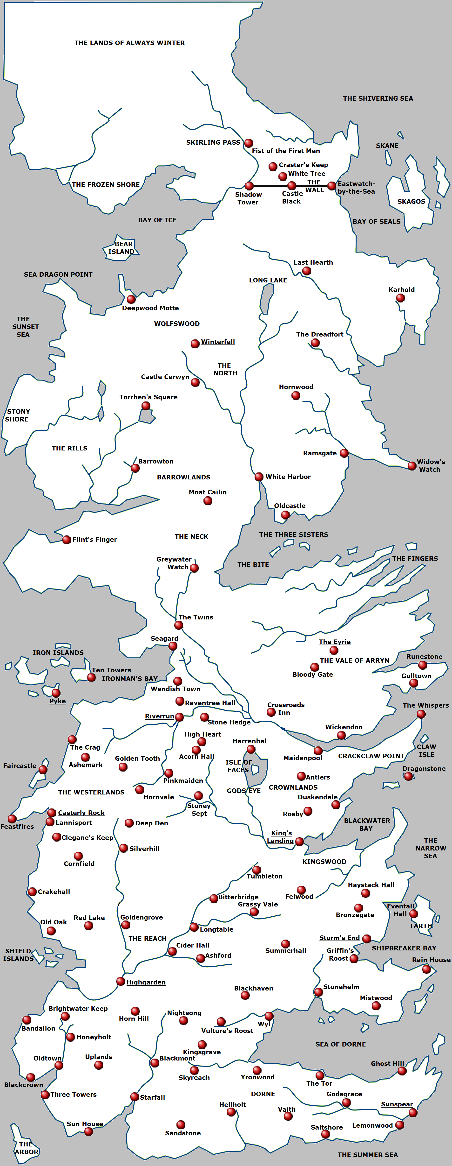 С юга на север протяжённость Вестероса составляет около пяти тысяч километров (до Стены).