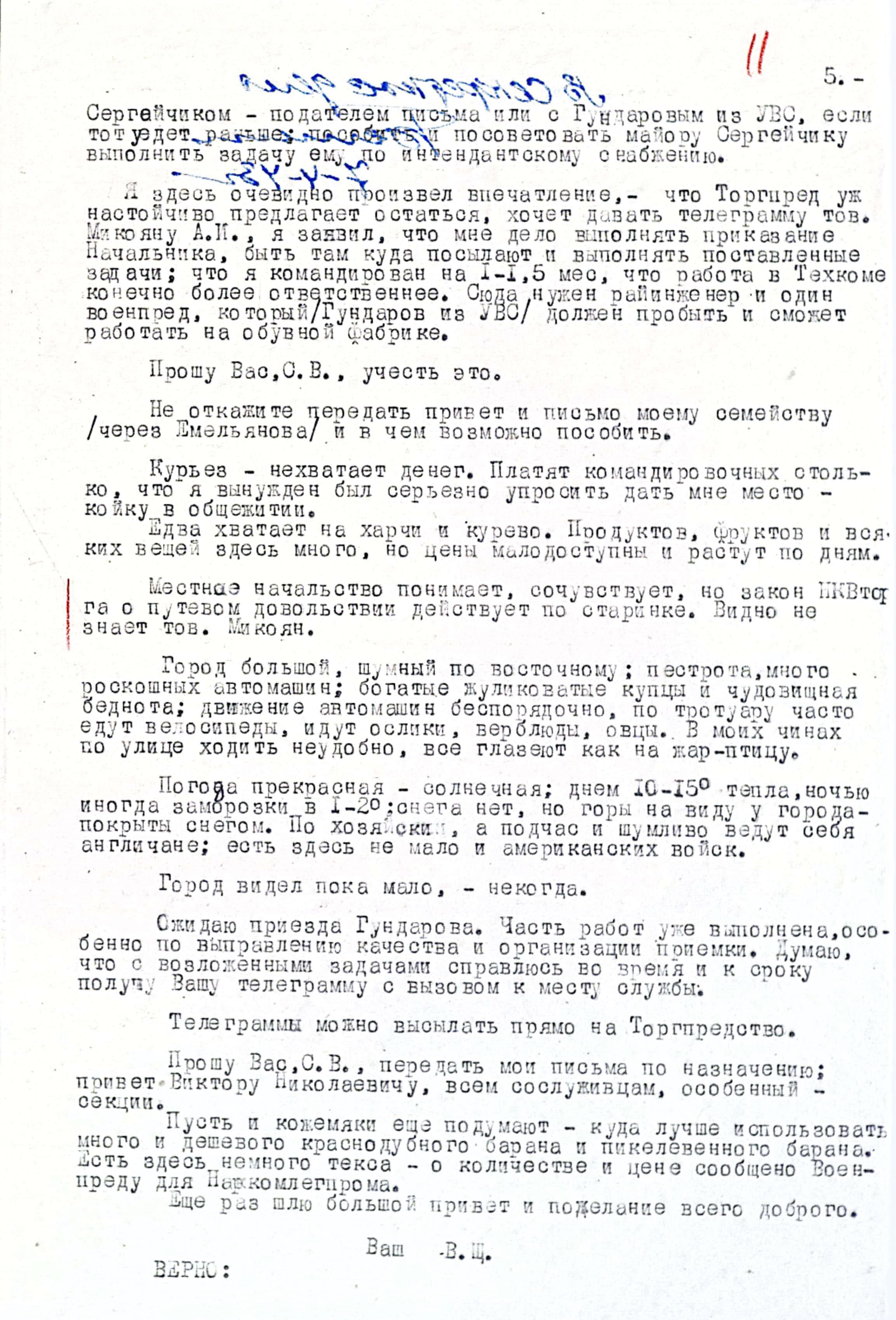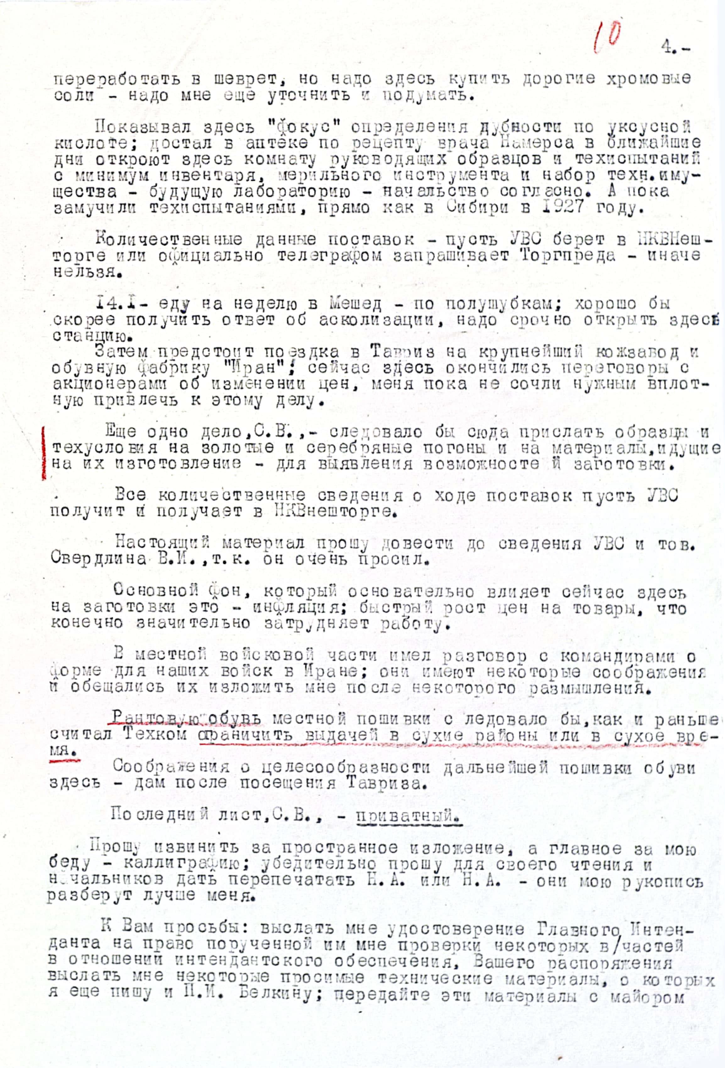Это письмо могло бы проходить, как личное, но приватного в нём не много, около 80% текста - служебная информация, важная и нужная. Ведь она касалась поставок обмундирования и обуви для бойцов Красной Армии, а также немалых государственных денежных средств, выделенных для приобретения необходимых материальных средств.