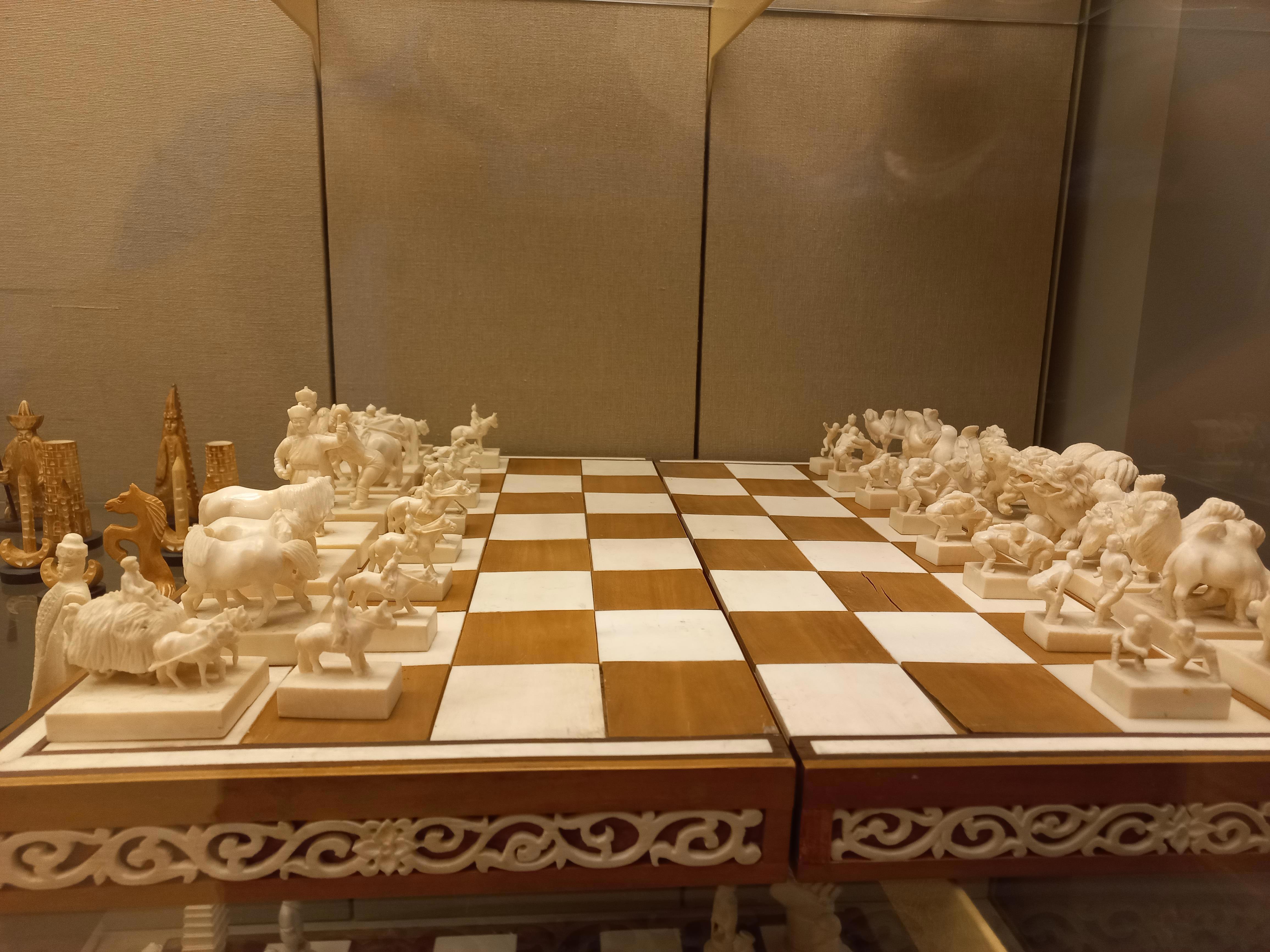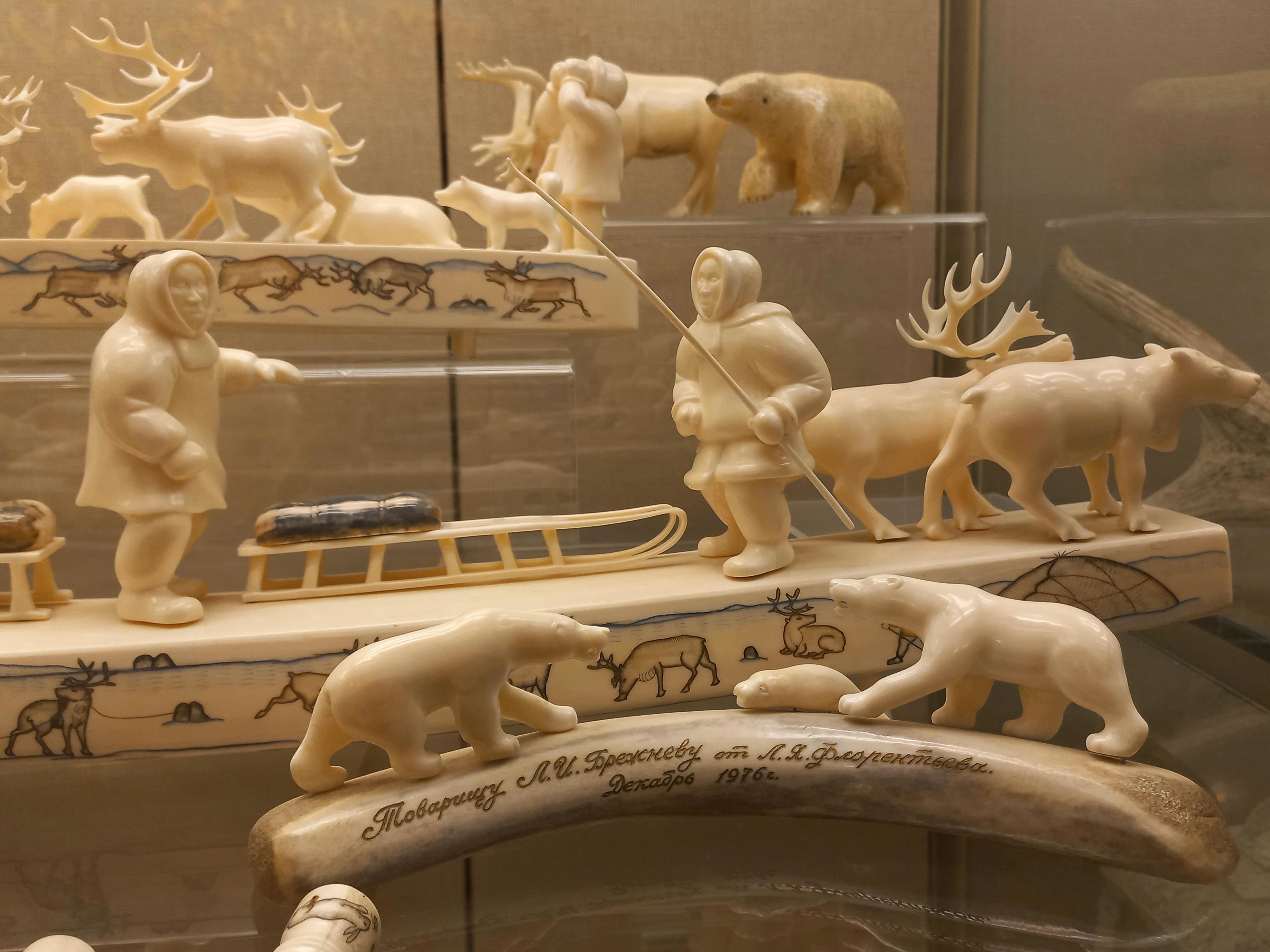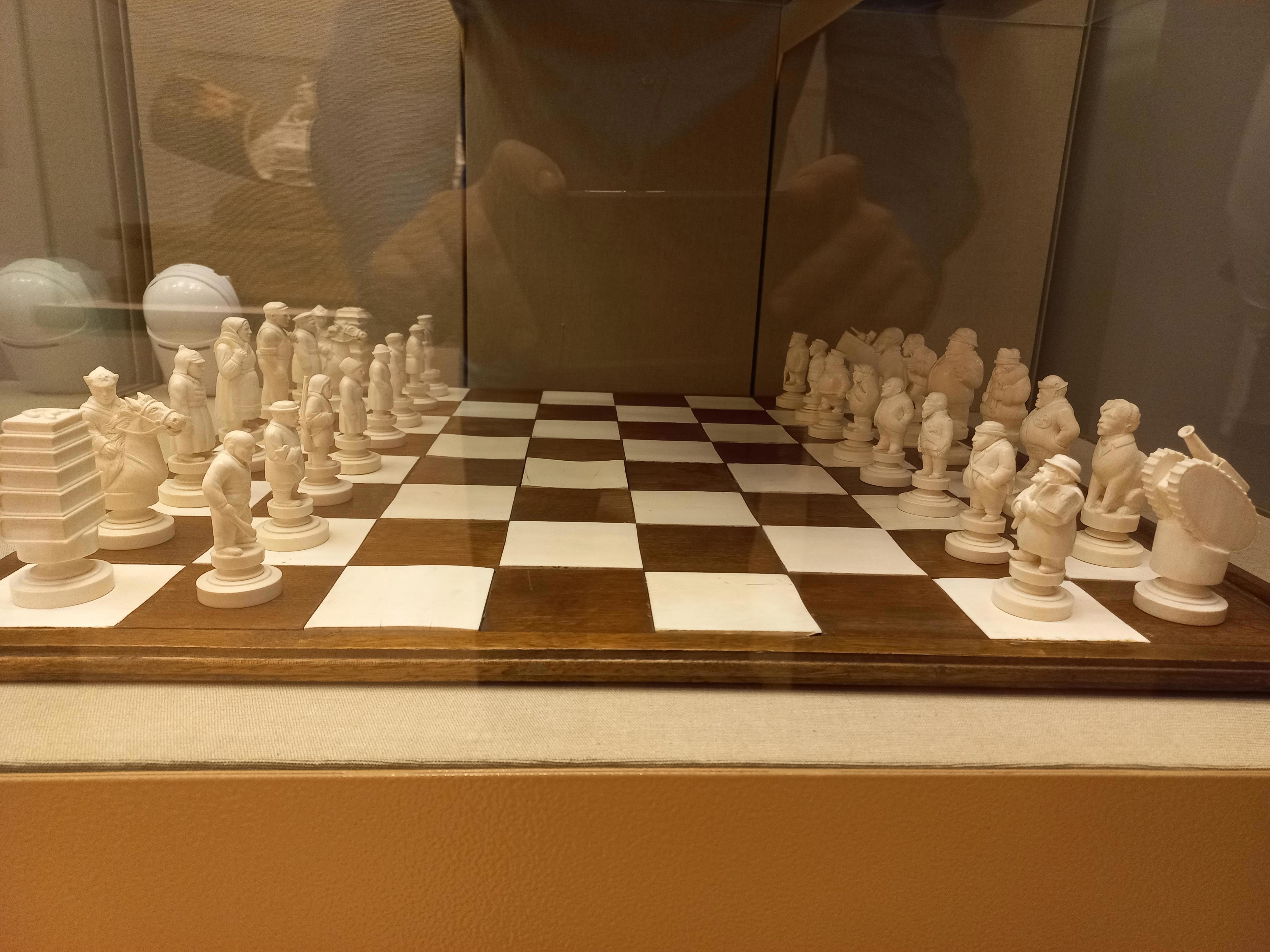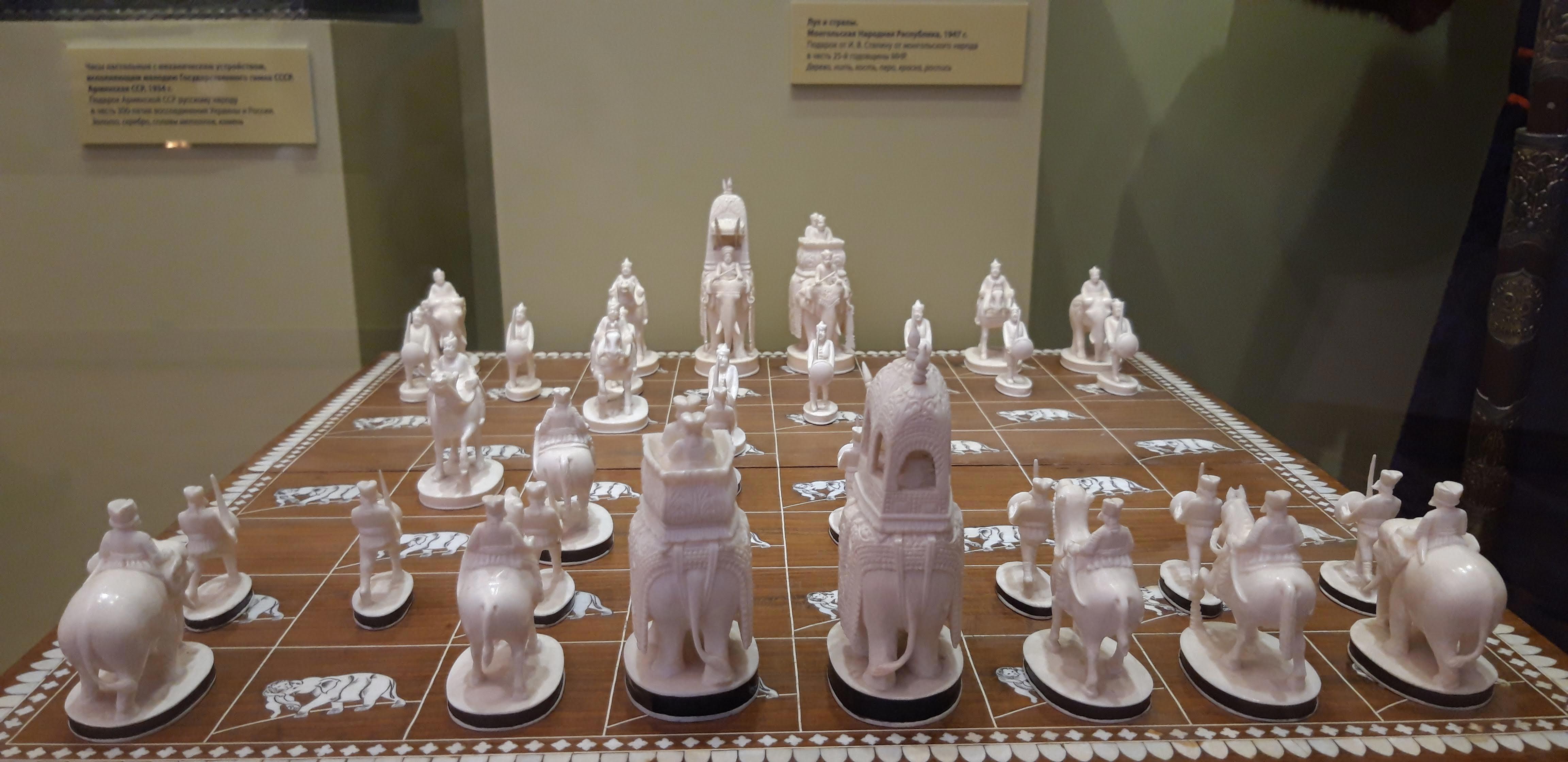 Как-то раз, в далёком детстве, будучи проездом в Москве, родители отвели меня в Исторический музей на Красной площади. Если не изменяет память, он тогда назывался музей Революции. Огромная выставка, с прекрасными экспонатами, поразила и оставила море впечатлений. Как на странно, лучше всего запомнились несколько предметов: пиджак Ленина, с разноцветными метками в местах ранений и подарки руководителям СССР. А их подарков в памяти закрепились два: шахматы, в виде двух армий, Красной и буржуинской; фигурки, вырезанные из кости, мальчик с собакой и оленья упряжка.