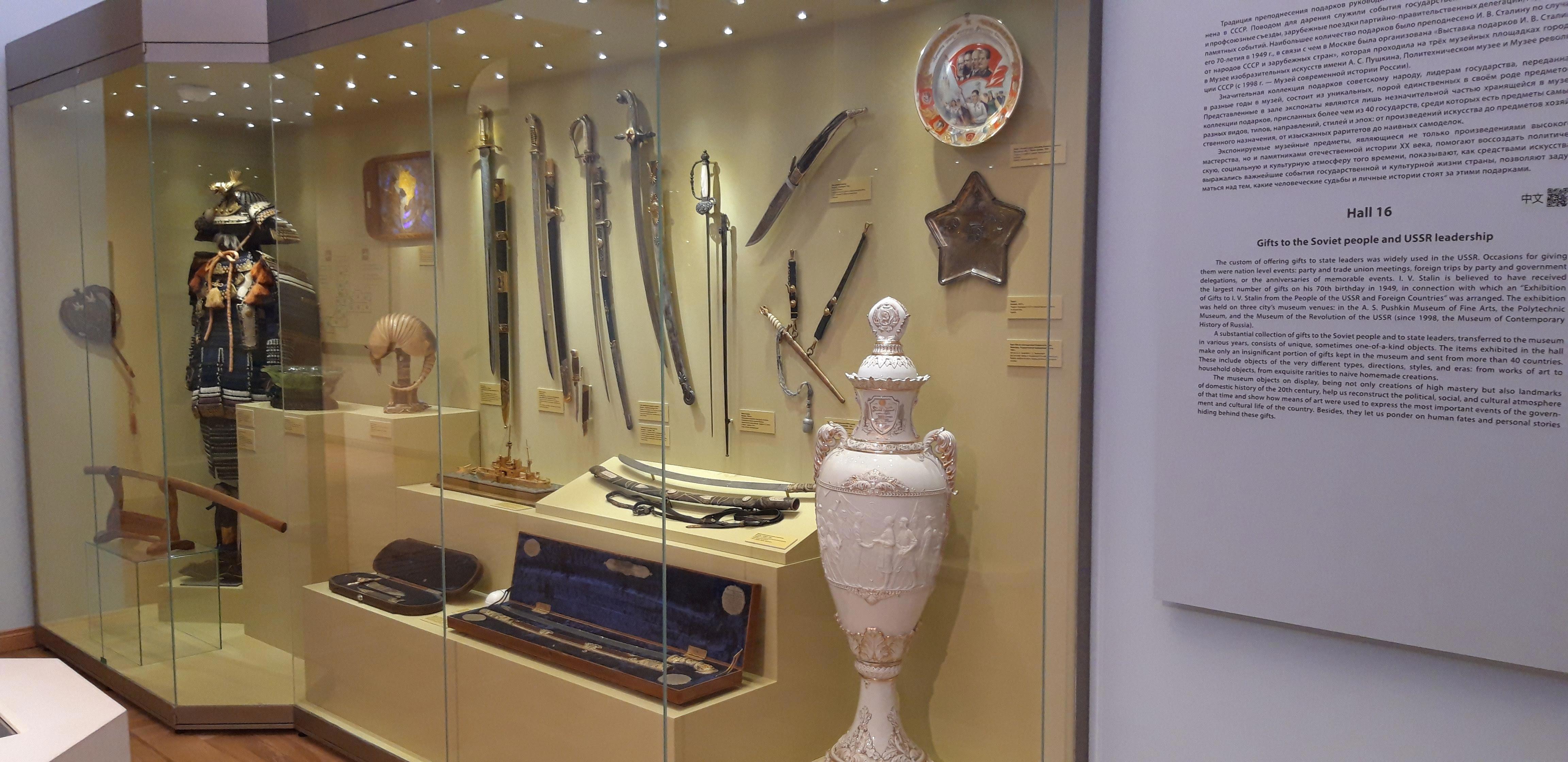Через много лет, уже поселившись в Москве, я вновь посетил Исторический музей. Бродя по залам, я так и не нашёл выставки подарков. Принявшись в интернете искать сведения о их судьбе, нашёл информацию, что многие экспонаты переданы в Государственный центральный музей современной истории России на Тверской, недалеко от памятника Пушкину.