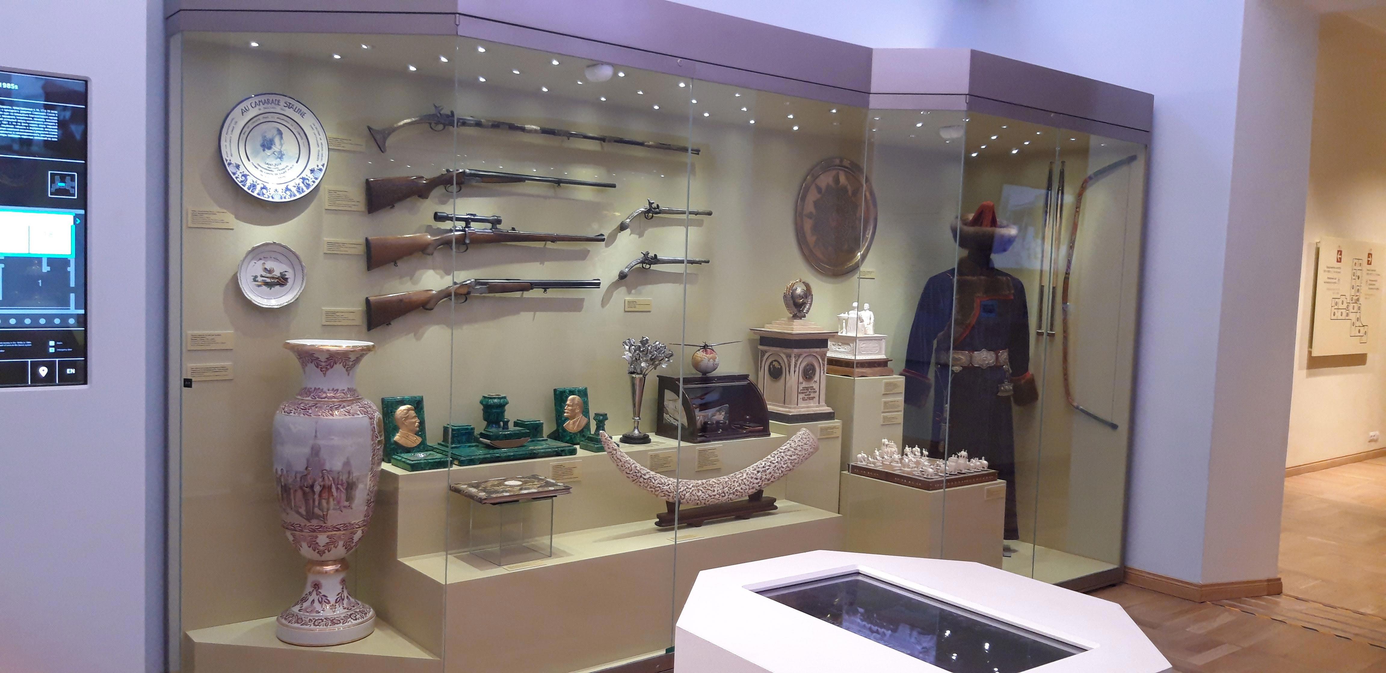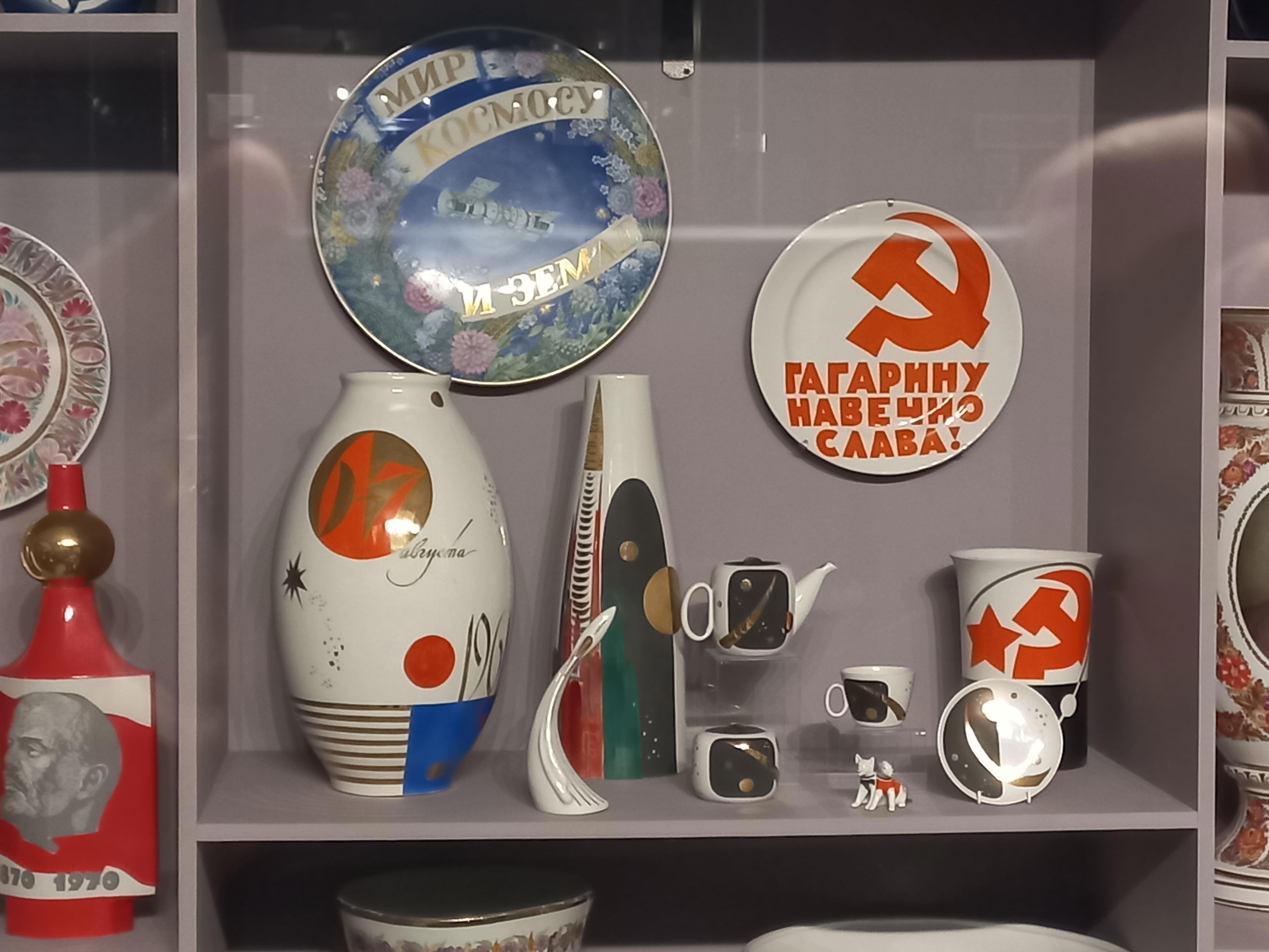 Первоначально, трудно разобраться, что и где. Подарки в честь выхода Первого Человека в космос, стоят вперемешку с подарками Сталину и Брежневу: