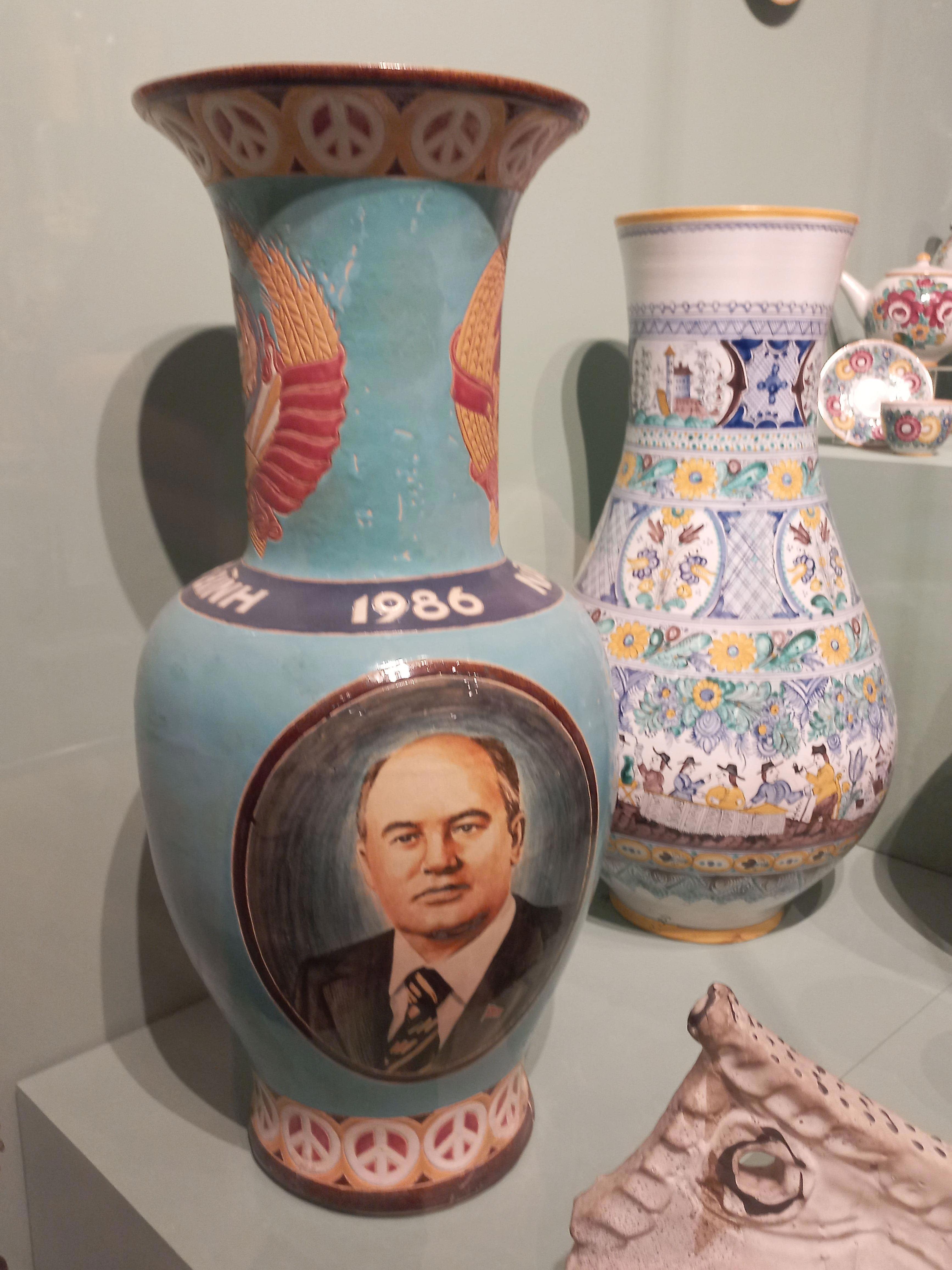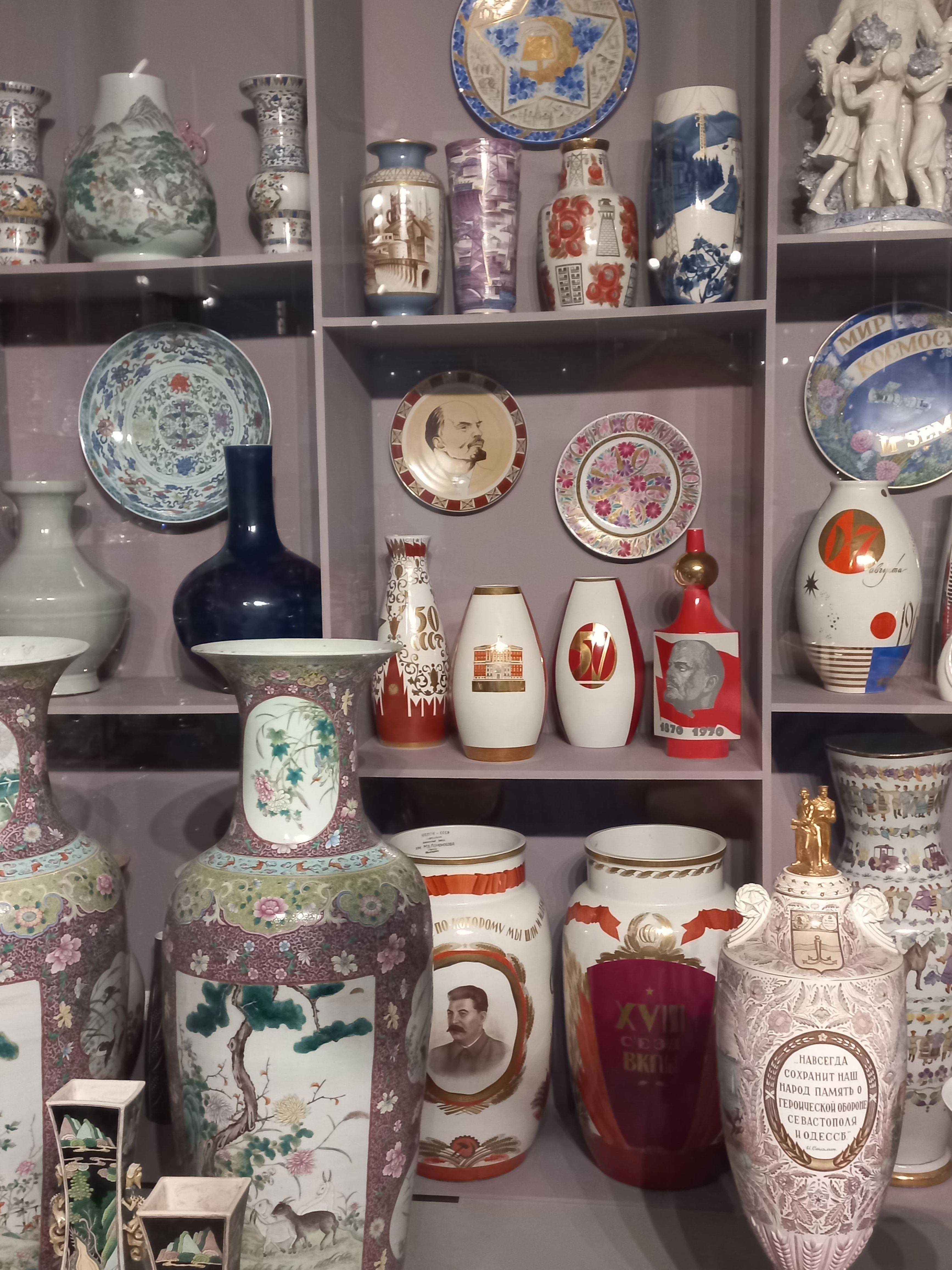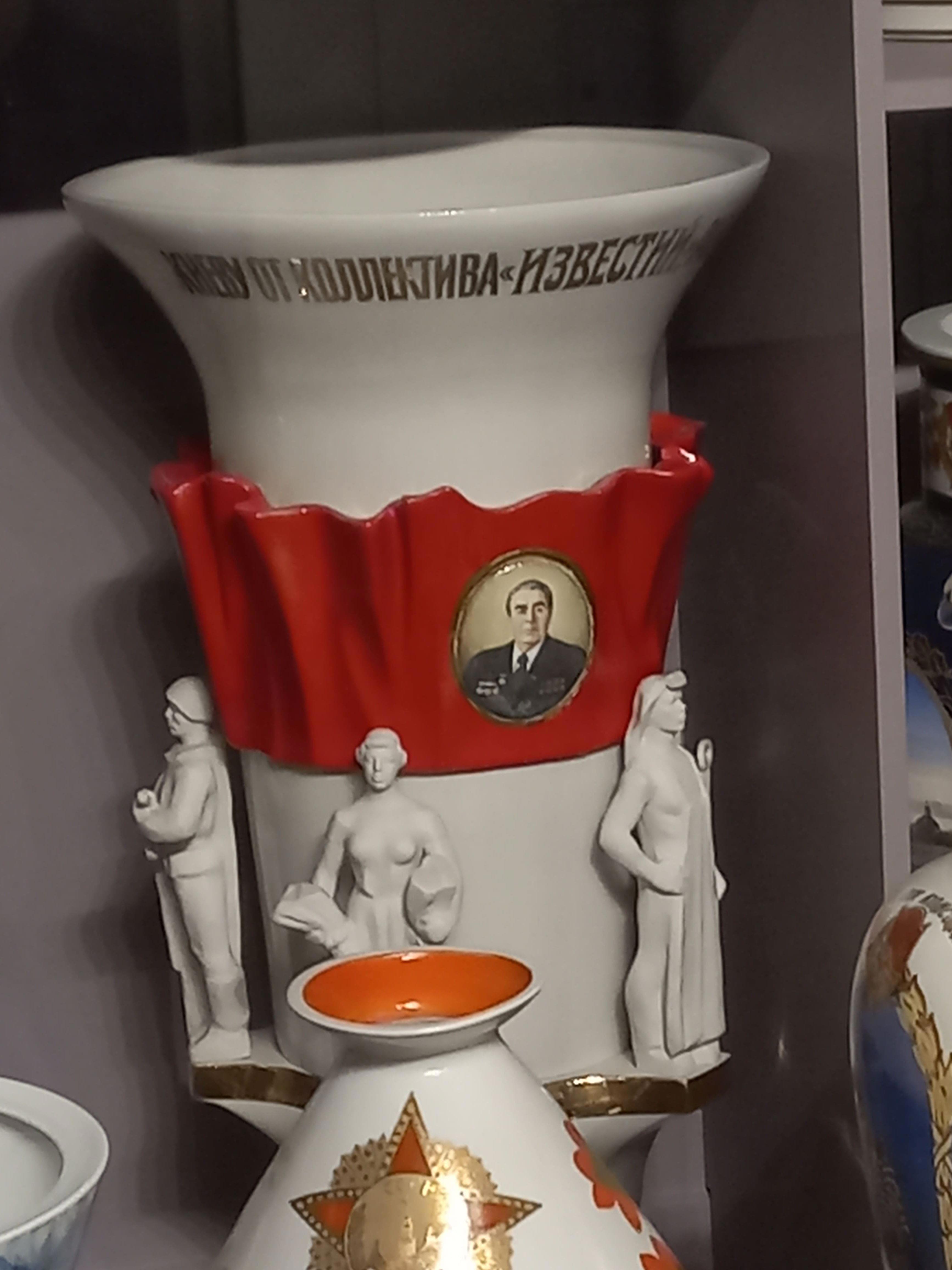 И ещё несколько удививших меня подарков. Если ваза с портретом Горбачёва вполне вписывалась в общую экспозицию, то увидеть тарелку с изображением Раисы Горбачёвой, было неожиданно: