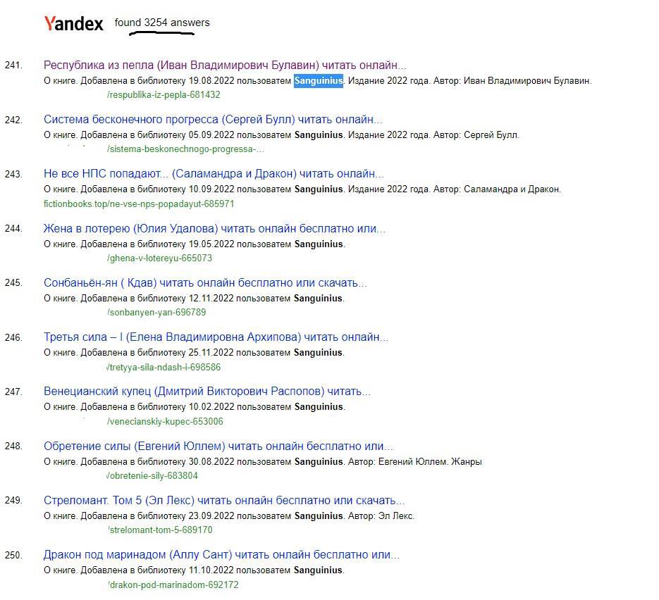 Забил тут в поиске на одном ресурсе имя блягодетеля выложившего мою книгу. Поиск выдал 3 тыс. с лишним таких же облягодетельствованных этим уёжщем книг. Почти все выложены в ближайшие полгода!
