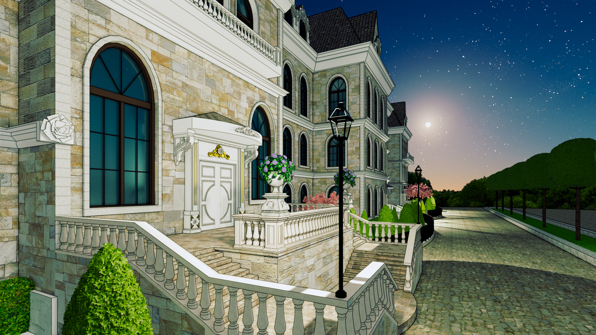 Автор: Elyn GontierПоскольку я рисую свой комикс с дворцами и старинными интерьерами, то решила не заморачиваться, отрисовывая каждую сцену с разных ракурсов, и взялась за создание своих 3д интерьеров и экстерьеров. Я понемногу создаю подобные модели. Благодаря рендеру enscape глаз не нарадуется краскам и освещению.
