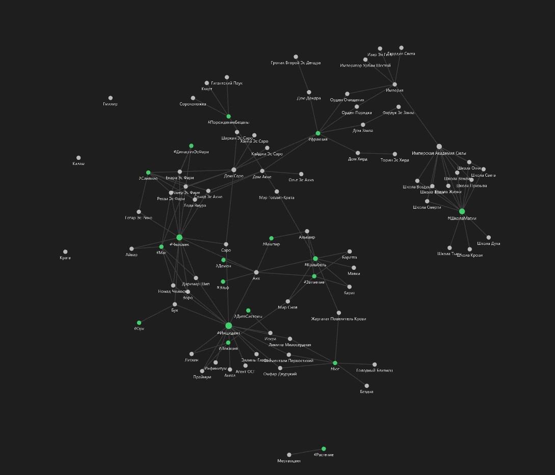 Пример ниже, это наброски моей собственной вселенной в Obsidian: