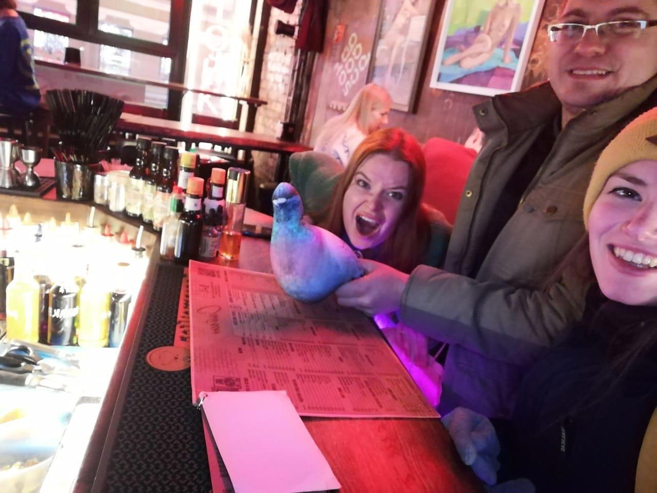 Пришлось вести неугомонную птицу в место, из которого аж за целые кварталы доносился ритмичный топот ног, ангельские голоса поющих гоблинсов и виртуозная игра на пианино. Мы направили свои стопы и крылья в Гоблинский Пуншъ (https://vk.com/goblinpunsh) — кабак на Гороховой, недавно открытый Саввой, отцом-основателем и богом-угнетателем банды разбойников Гарлик Кингзъ (https://vk.com/garlickings).