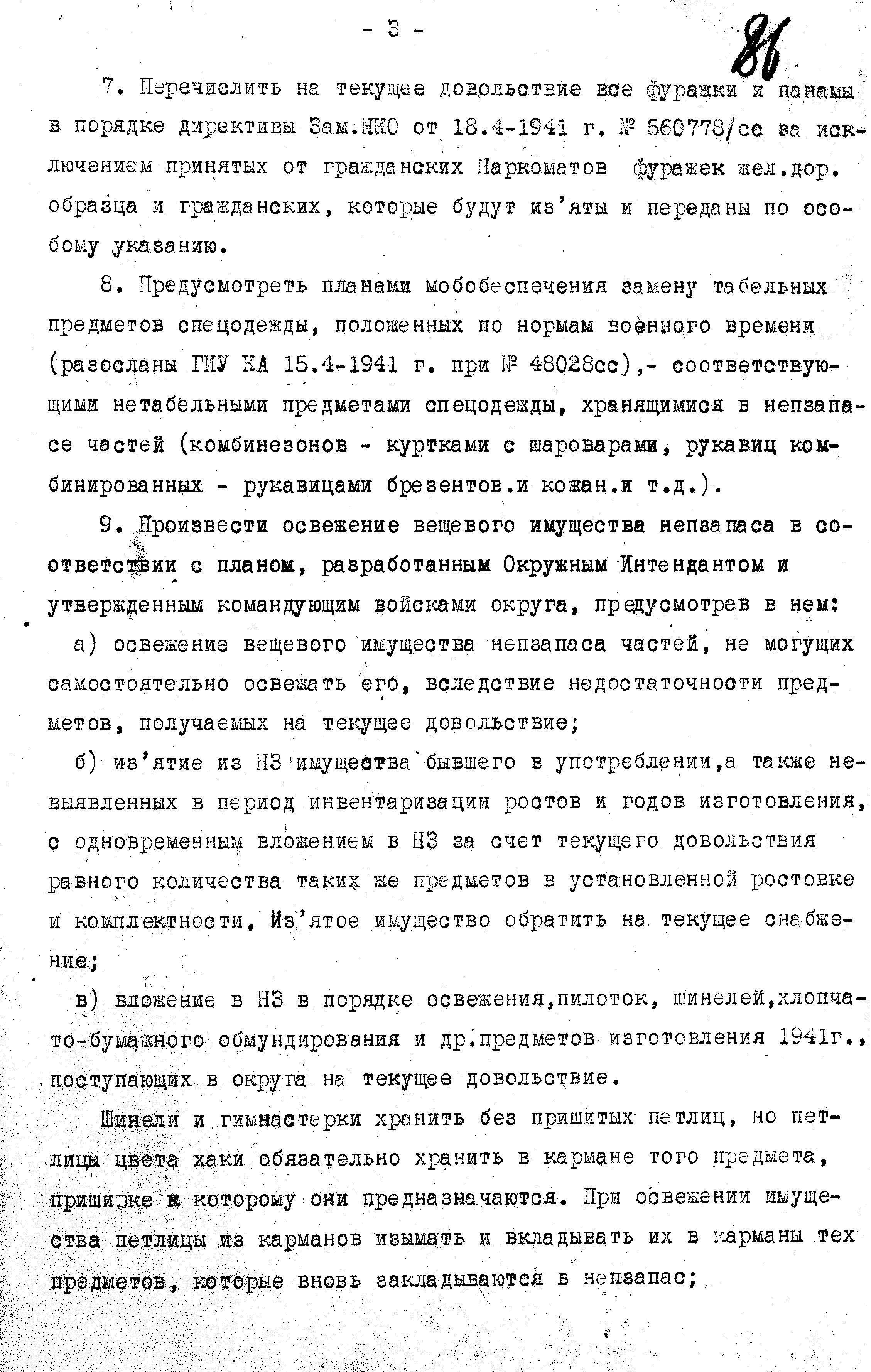 Обо всех упущениях и недостатках подробно рассказывалось в директивах, они же стали предметом серьёзного обсуждения на Всеармейском совещании в мае 1941 г. Но, о совещании поговорим в другой раз, а по линии вещевой службы была направлена вот эта директива: