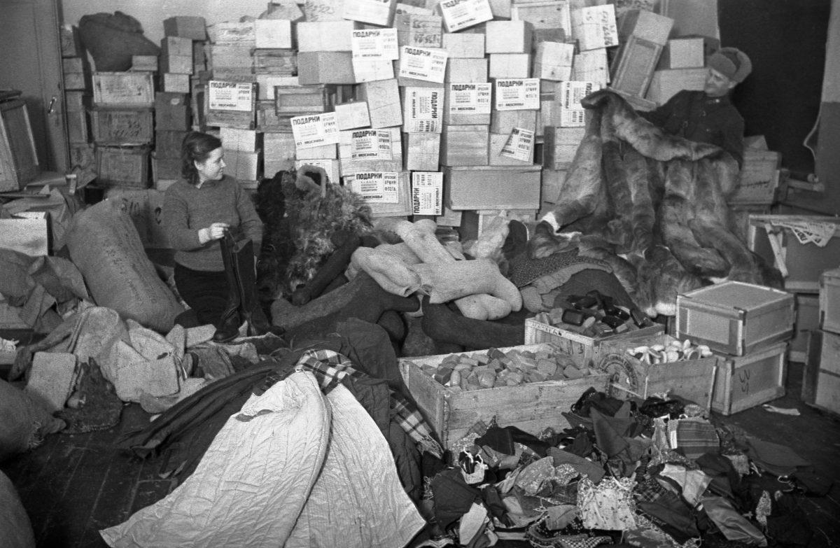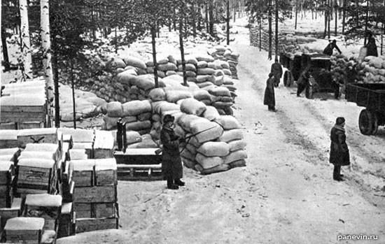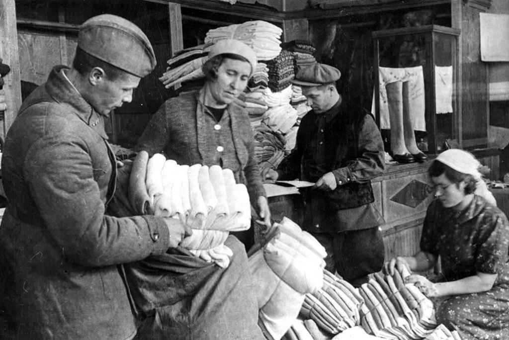 К сожалению, фотографий, на которых были бы изображены склады или складские работники, в интернете встречаются редко, но несколько кадров всё же нашлось. На них изображены стационарный, полевые склады и хранилище с имуществом, сданным в Фонд Обороны: