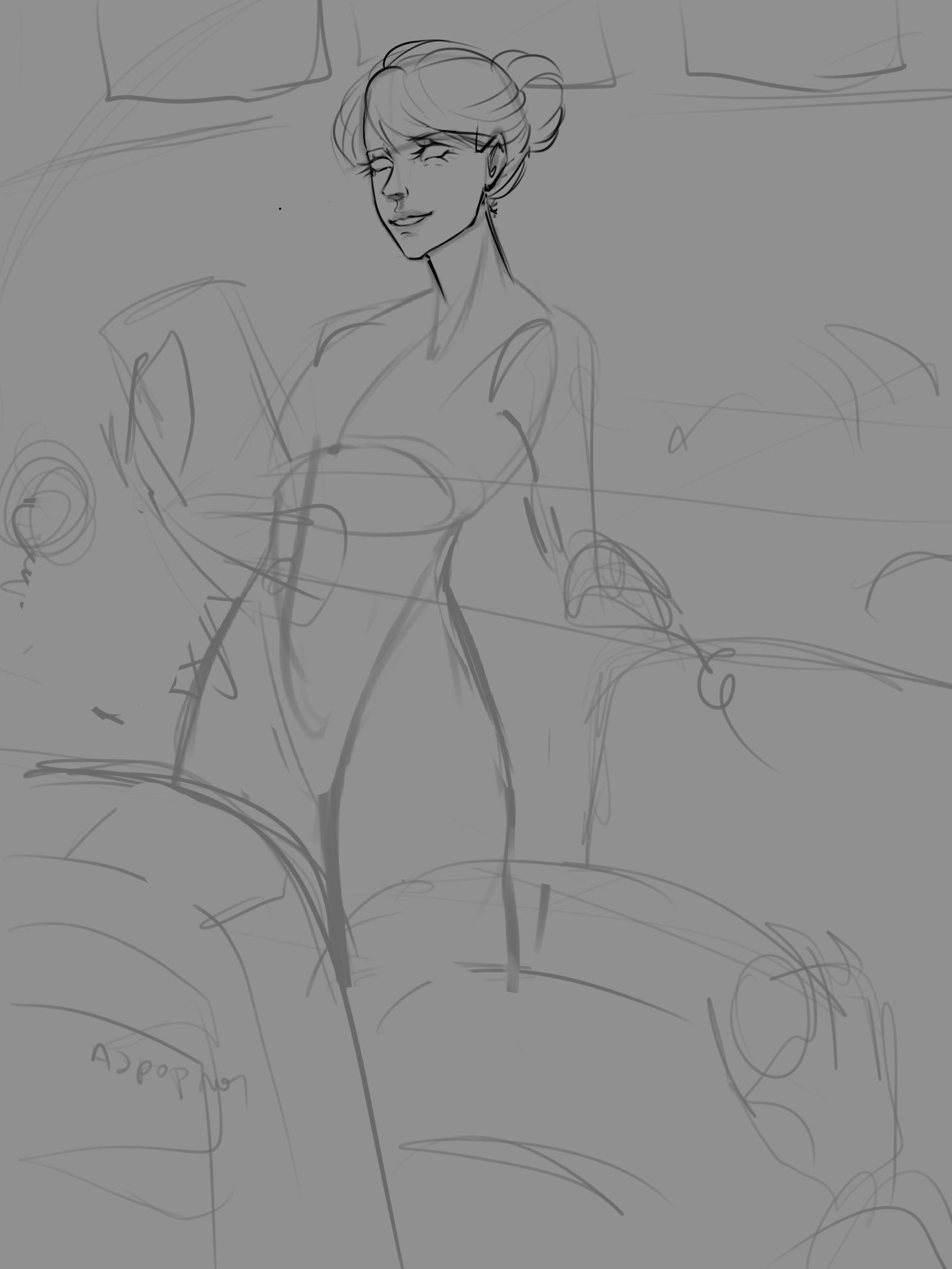 Данную задумку воплотить мне оказалось крайне сложно. Во-первых, потому что я пытаюсь сменить стилистику в рисовании. Моя мне на-до-е-ла, я хочу сделать что-то более не реалистичное. Во-вторых, ракурсы. Чертовы ракурсы. Я даже примерно не смогла найти референсов для того, что я хочу изобразить, и дело тут даже не в эмоции хотя с ней тоже придется возиться: P