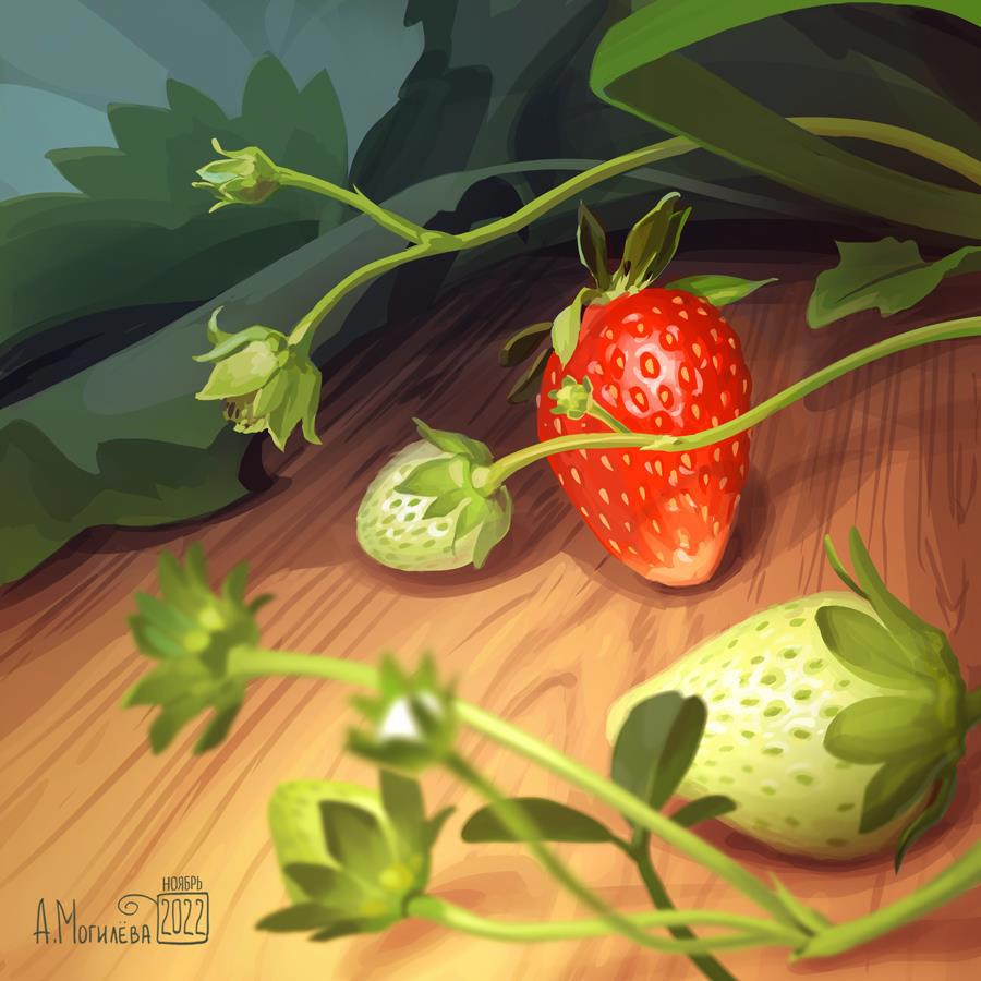 В понедельник 1-часовой рисунок внезапно вылился в 3,5-часовой, потому что: "это же моя любимая дачная клубника, разве я могу нарисовать её плохо?"