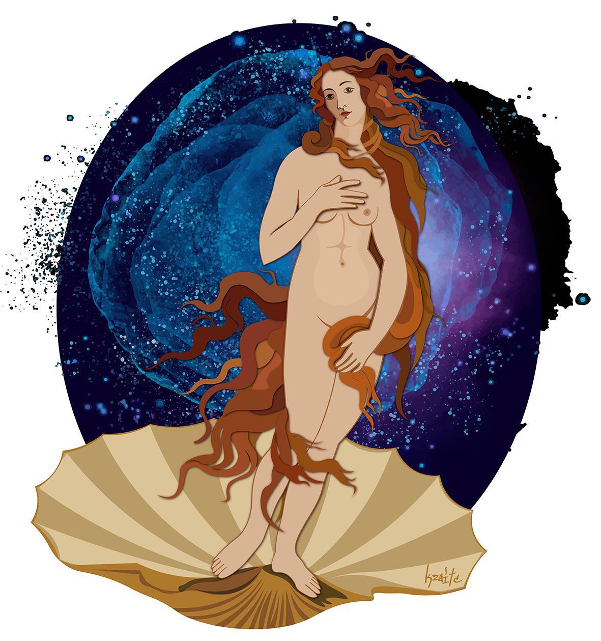 Вольная вариация на тему... Рождение сверхновой Венеры. Также в векторной программе. Немного переборщила с волосами, но это было так и задумано)))