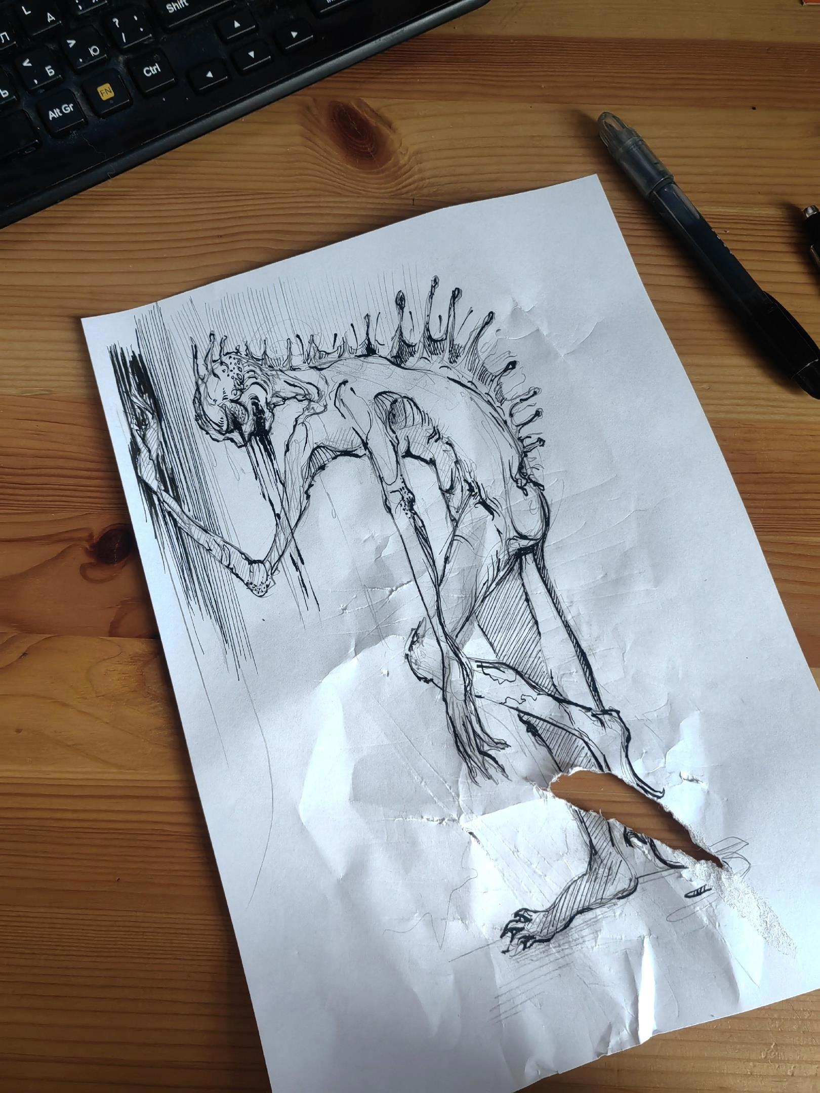 А мой домашний монстр украл рисунок и пожевал. :)))