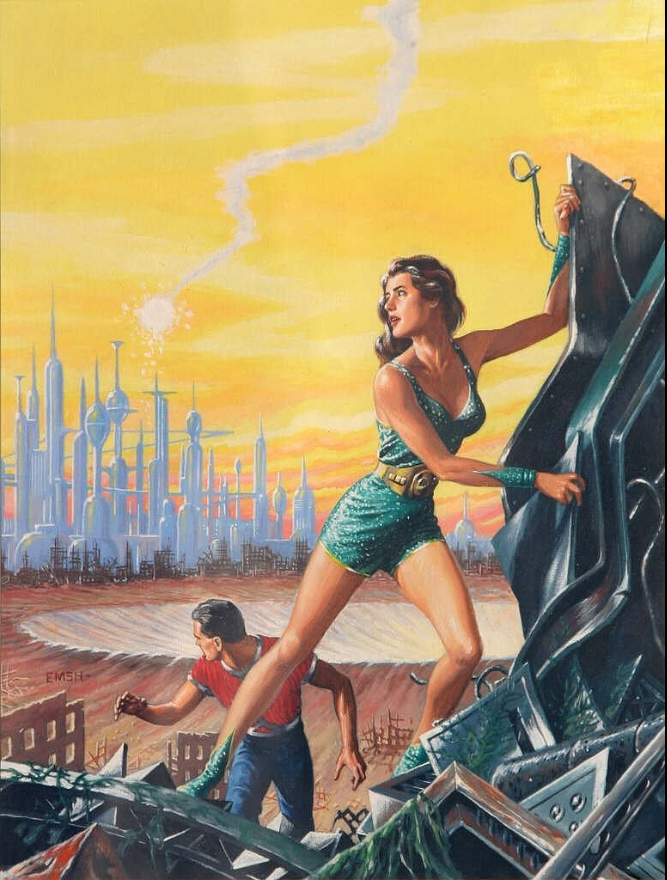 Автор: Константин ИсмаевЭдмунд Александр Эмшвиллер (16 февраля 1925 – 27 июля 1990) - американский художник-визуалист, известный своими научно-фантастическими иллюстрациями и новаторскими экспериментальными фильмами. Обычно он подписывал свои иллюстрации как Эмш, но иногда использовал Эда Эмша, Эда Эмслера, Уиллера и других.