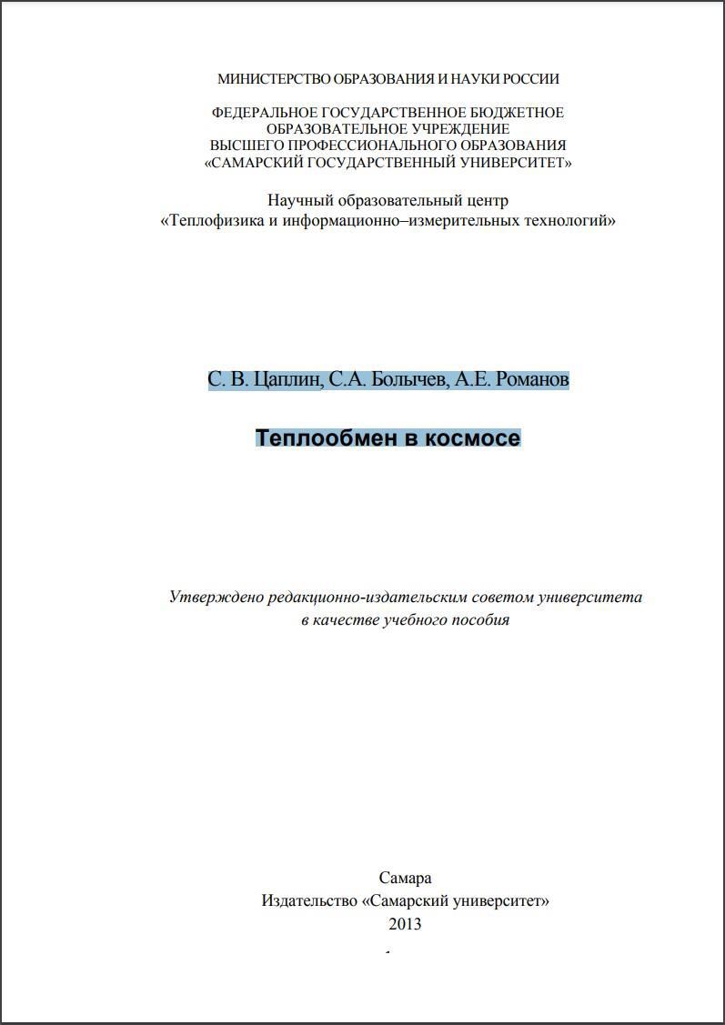 С. В. Цаплин, С.А. Болычев, А.Е. Романов Теплообмен в космосе - из Самарского универа.