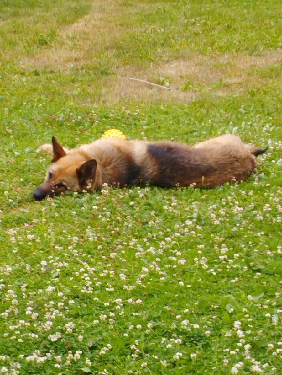 Потом Гришка у мамы в деревне — самый умный и достойный пес из всех, что я знал. Ну, может, Беня и поумнее был, но о Бене потом отдельно. Сейчас вот эта рыжая там же, в деревне: