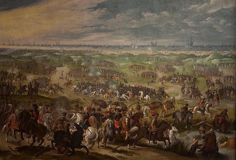 Представьте, легкое летнее солнце, море, пляж… Только вместо девочек в бикинии и криков «Воблапиво» суровые мужики в кирасах и выкрики команд на четырех языках. Мориц разместил свои лучшие полки в сильной оборонительной позиции на вершине дюн у Ньивпорта, с пушками, прикрывавшими оба фланга с высоты. Позиция была прекрасной, что чуть позже и выяснится. Первой линией пехоты были англичане под командованием видавшего виды Фрэнсиса Вера. Они должны были встретить и остановить легендарную испанскую пехоту (представляю, что сжималось у англичан в тот момент… Сердце конечно же).