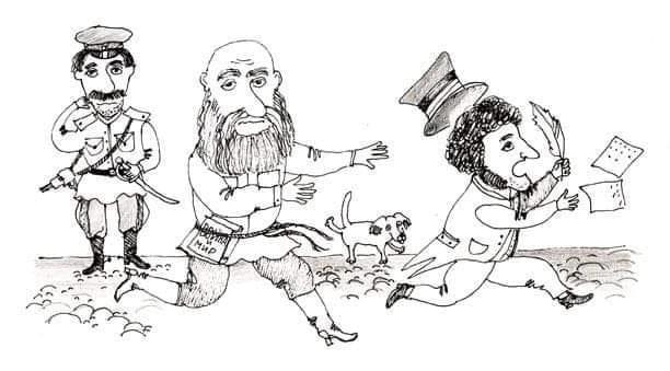 Лев Толстой очень любил детей. Однажды он шёл по Тверскому бульвару и увидел идущего впереди Пушкина. Пушкин, как известно, ростом был невелик. «Конечно, это уже не ребёнок, это скорее подросток, — подумал Толстой. — Всё равно, дай догоню и поглажу по головке». И побежал догонять Пушкина. Пушкин же, не зная Толстовских намерений, бросился наутёк. Пробегая мимо городового, сей страж порядка был возмущён неприличной быстротой в людном месте и бегом устремился вслед с целью остановить. Западная пресса потом писала, что в России литераторы подвергаются преследованию со стороны властей.