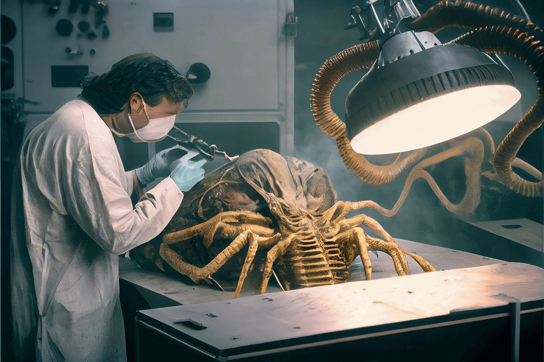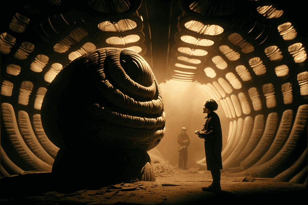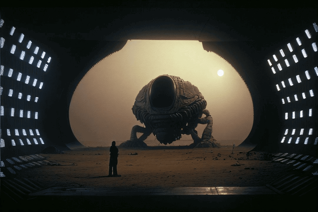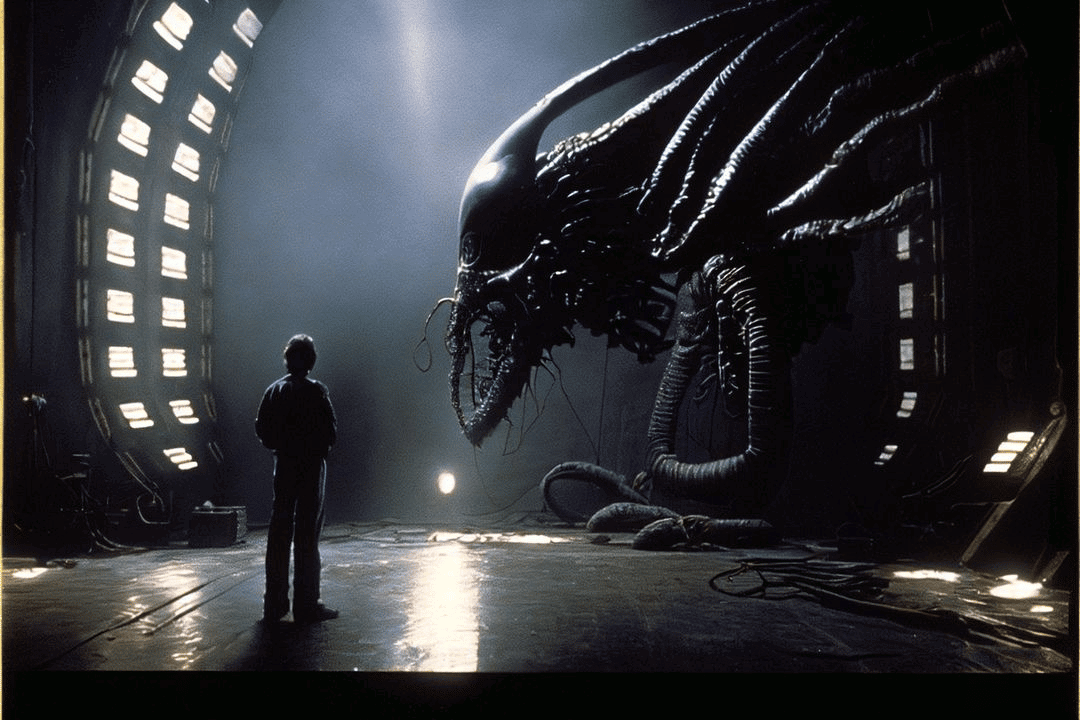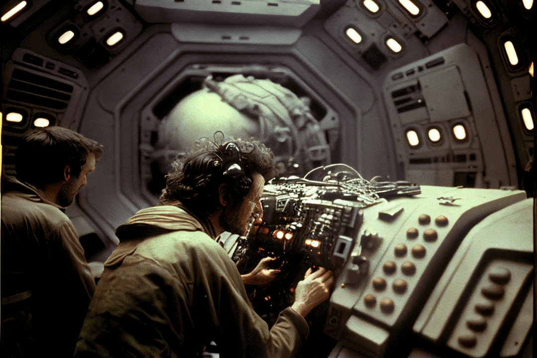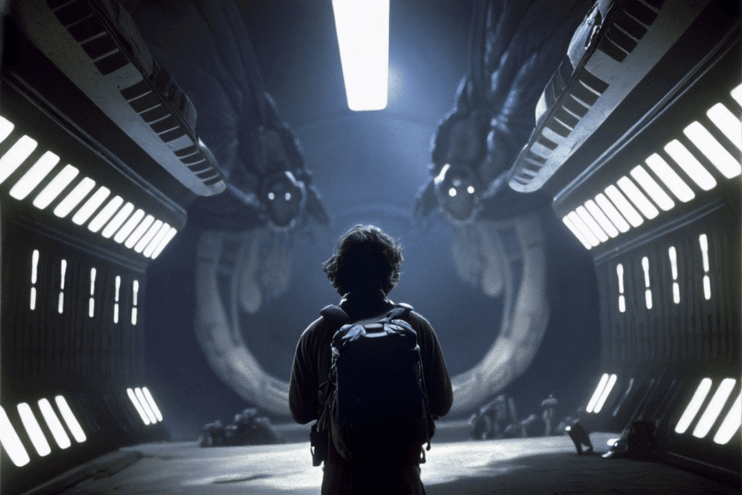 Спросите, что это? Это результат работы нейросети. Так, согласно результатов её работы, выглядел бы фильм (кадры из него) "Чужой", если его снимал Стенли Кубрик.