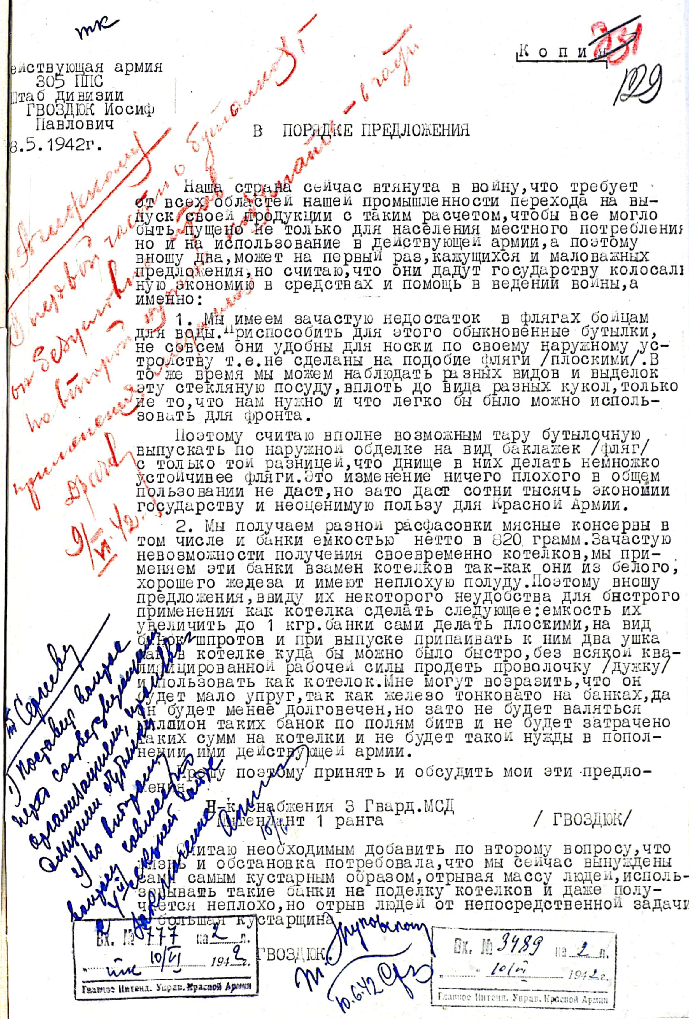 Приходили предложения и от неравнодушных граждан, свои записки и доклады отправляли бойцы и командиры действующей армии.