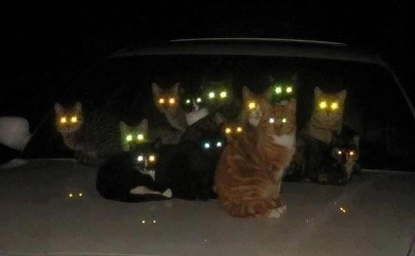 Кошачьи глаза отражают свет, поэтому кажется, что они светятся