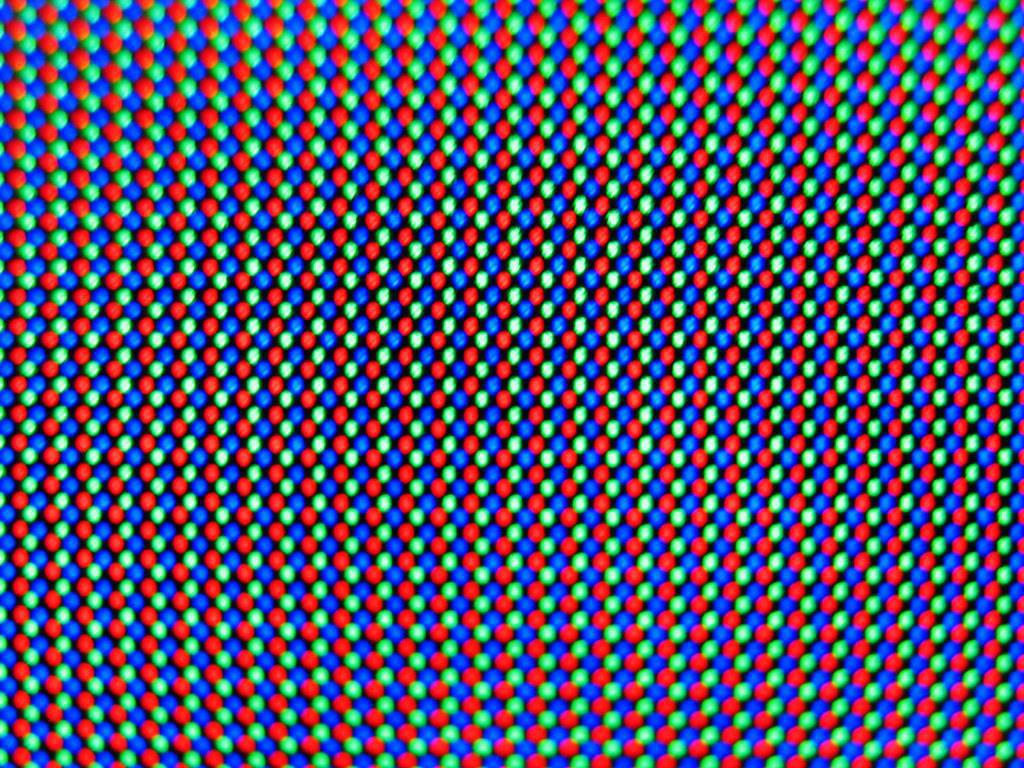 Изображение красных, зелёных и синих элементов (субпикселей) ЖК-дисплея. Аддитивное смешение объясняет, как можно использовать свет от этих цветных элементов для воспроизведения цветных изображений.
