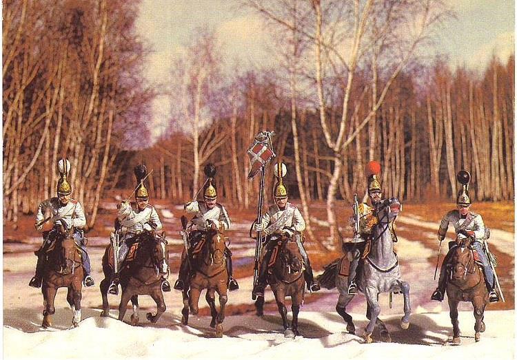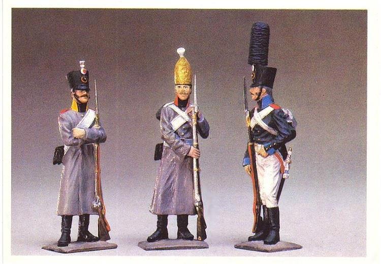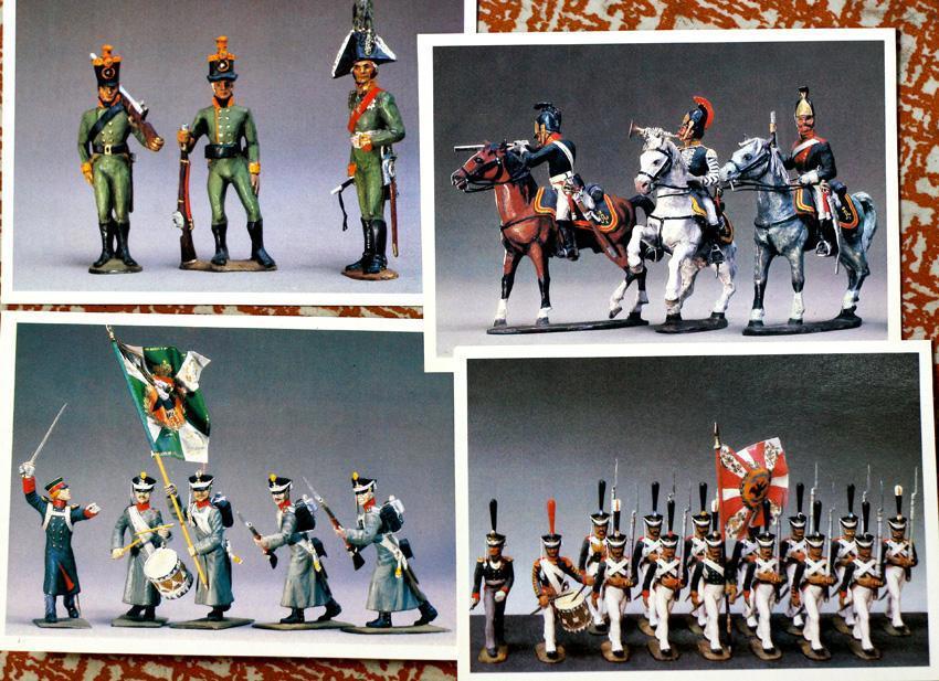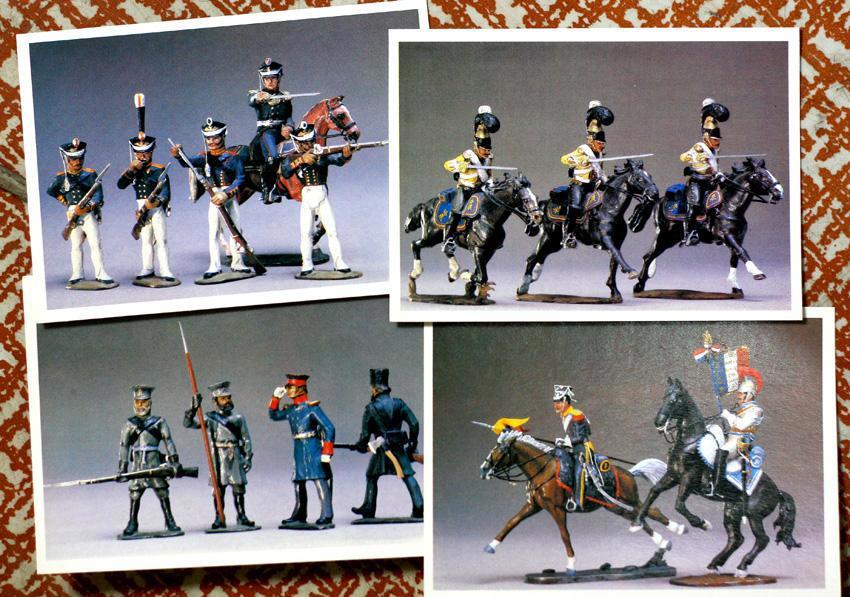 Так что... Когда говорят про детство в СССР, большинство мальчишек вспоминают почти одно и то же: железные маузеры со съемной крышкой для вставки пистонов, пластмассовые красно-желтые АК с голубыми штыками, не убиваемые до сих пор модели бронетехники, ковбойцев с индейцами и викингами, и, само собой, плоских оловянных солдатиков. А мне в голову приходят другие, ни разу не виданные в натуре, встреченные только в комплекте открыток и вбившие в мой шальной мозг желание иметь именно их. Увлечение изменилось, коллекция маленькая, всего 50-т фигурок, в основном серых, но странная страсть осталась. А началось все с них, со сказочной точности миниатюрных воинов времен Отечественной войны, отлитых и раскрашенных в СССР: