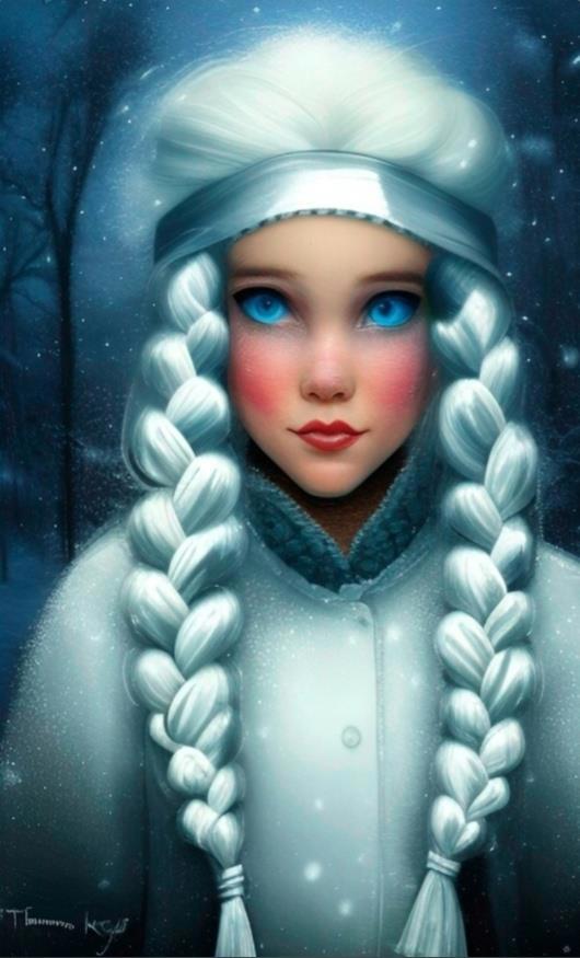 Вслед за Дедом Морозом, я попросила нарисовать нейросесть Снегурочку. И поняла, что муки с Дедом Морозом были цветочками. Очень сложно объяснить нейрости, кто такая внучка Деда Мороза, если она не знает, кто такой Дед Мороз. Пришлось усложнить запрос: кого я хочу нарисовать? Снегурочку с советских открыток и мультфильмов не получить. Можно получить Снегурочку классическую. А кто она такая? Сказка о Снегурочке относится к XVIII веку и во многом напоминает сказания северных народов России о снежных девочках, охраняющих замерзающие реки. Фольклорист Афанасьев писал, что создание это в древности считалось зимним духом, который сковывал водоёмы льдом. За зиму Снегурочка «собирала» желания людей, а по весне исчезала. Народ верил, что эта зимняя красавица непременно исполнит то, о чём они её попросили, а потом вернётся с наступлением морозов. Снегурочек на самом деле две: одна - девочка Снежевиночка из сказки, которую бездетные родители слепили себе из снега, другая - девушка из пьесы Островского, дочка Мороза и Весны-Красны (а на самом деле Дед Мороз женат на Матушке Зиме). Образ Снегурочки древнее даже самого Мороза, изначально она была богиней холода и смерти, и по весне её символ (Кострому/Масленицу) ритуально сжигали, поэтому она сгорает в костре в сказке. А истории о духе зимы стали красивыми снежными сказками...