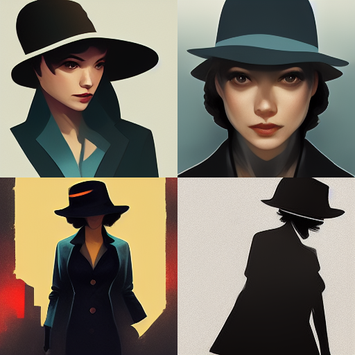 beautiful noir lady in hat, detailed face, detailed skin, amazing detail, perfection, new-york 40s, full body, grey cloak, character concept art --v 4
