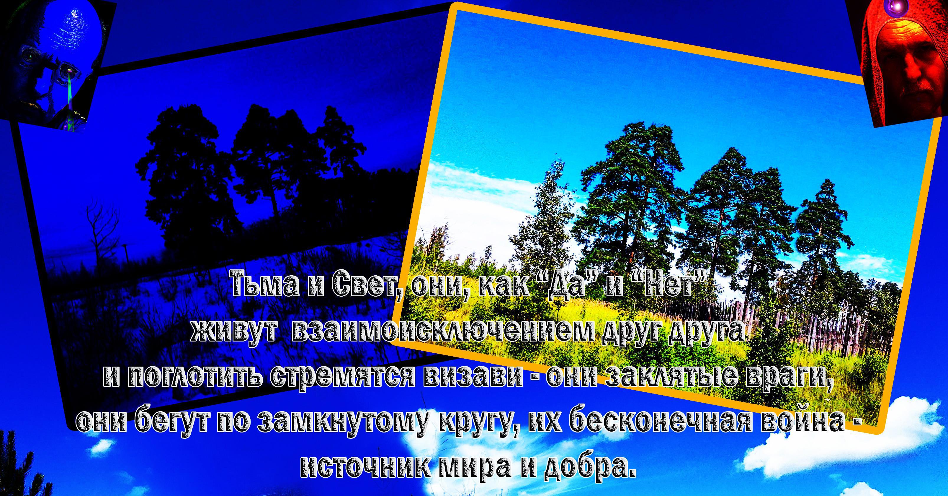Тьма и Свет, они, как "Да" и "Нет" живут взаимоисключением друг друга и поглотить стремятся визави - они заклятые враги, они бегут по замкнутому кругу. Их бесконечная война - источник мира и добра.